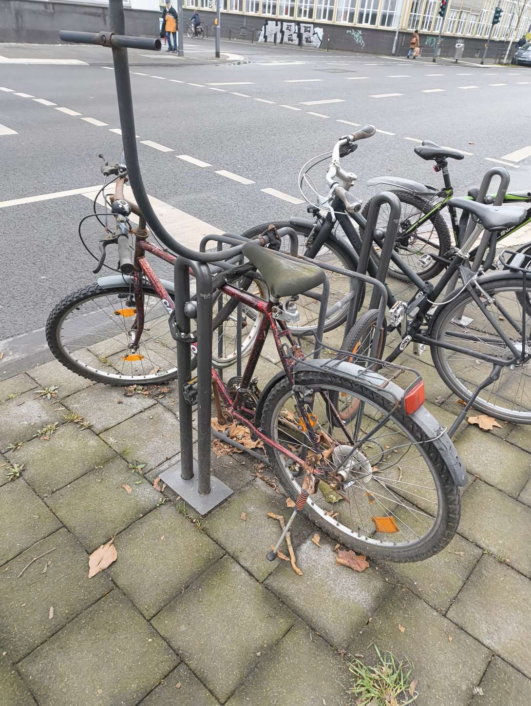 Das Fahrrad steht hier seit Wochen mit platten Reifen und rostet.