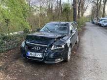 Das Auto steht seit Wochen mit aufgebrochener Motorhaube und ohne Frontkennzeichen unbewegt da. Hinteres Kennzeichen vorhanden.