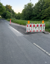 Hier stehen seit Monaten zwei Absperrungen einer alten Baustelle.