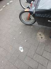 Durch den Glascontainer-Leerungs-LKW wurde der Gehweg beschädigt, weil nichts untergelegt wurde. Bitte reparieren...