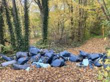 Es ist Herbst geworden um die Matratze am Sraßenbahndamm... Und sie hat Zuwachs bekommen von Alttextilien und Plastikteilen.