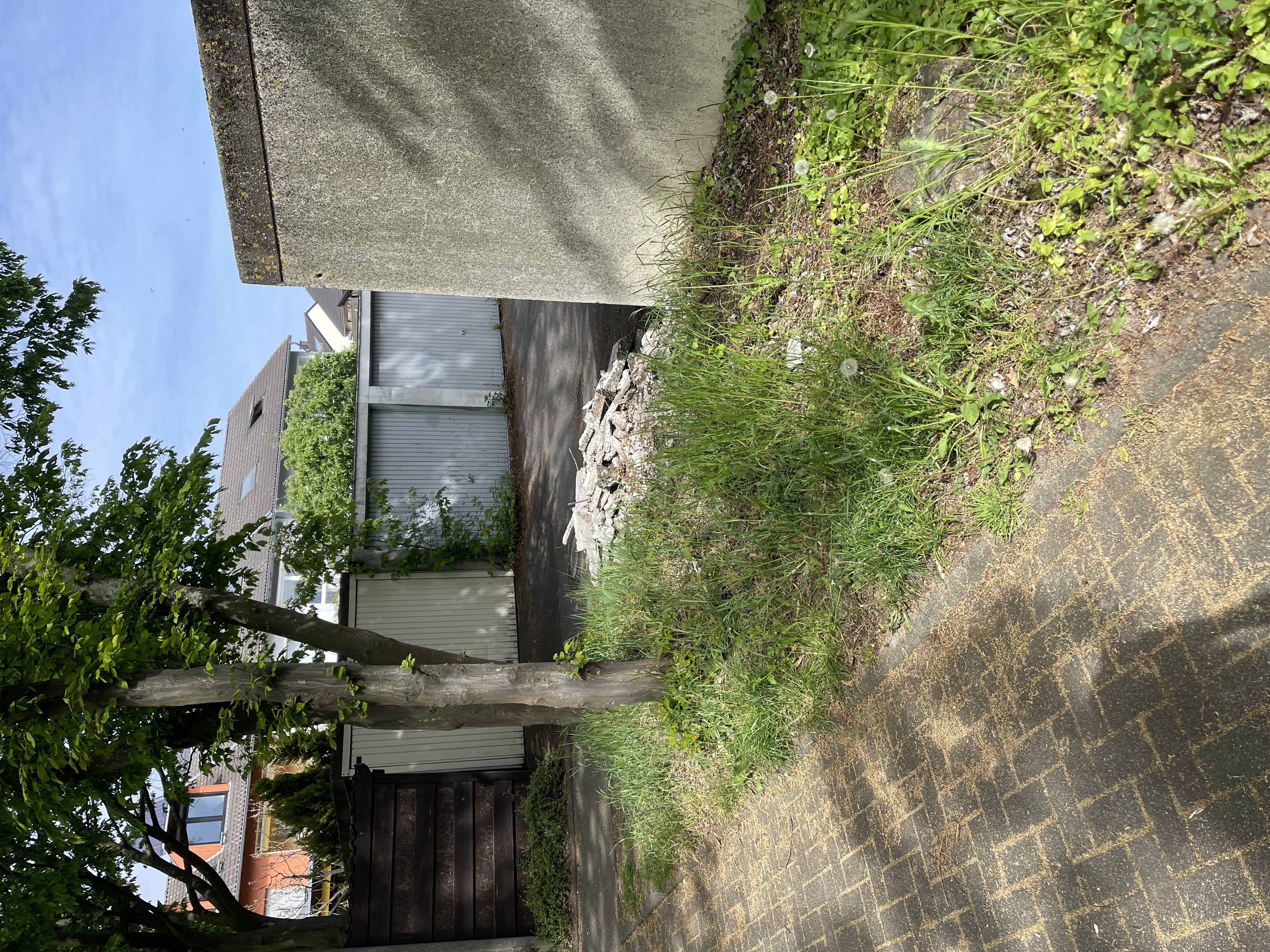 Aus dem Schutthaufen stehen Muniereisen raus und könnten für kleine Kinder, die auf dem Garagenhof oft mit kleinen Laufrädern unterwegs sind, gefährlich werden. Übri: Luftlinie zur Kita ca. 50 m - dementsprechend sind viele Kinder in den Gängen unterwegs.