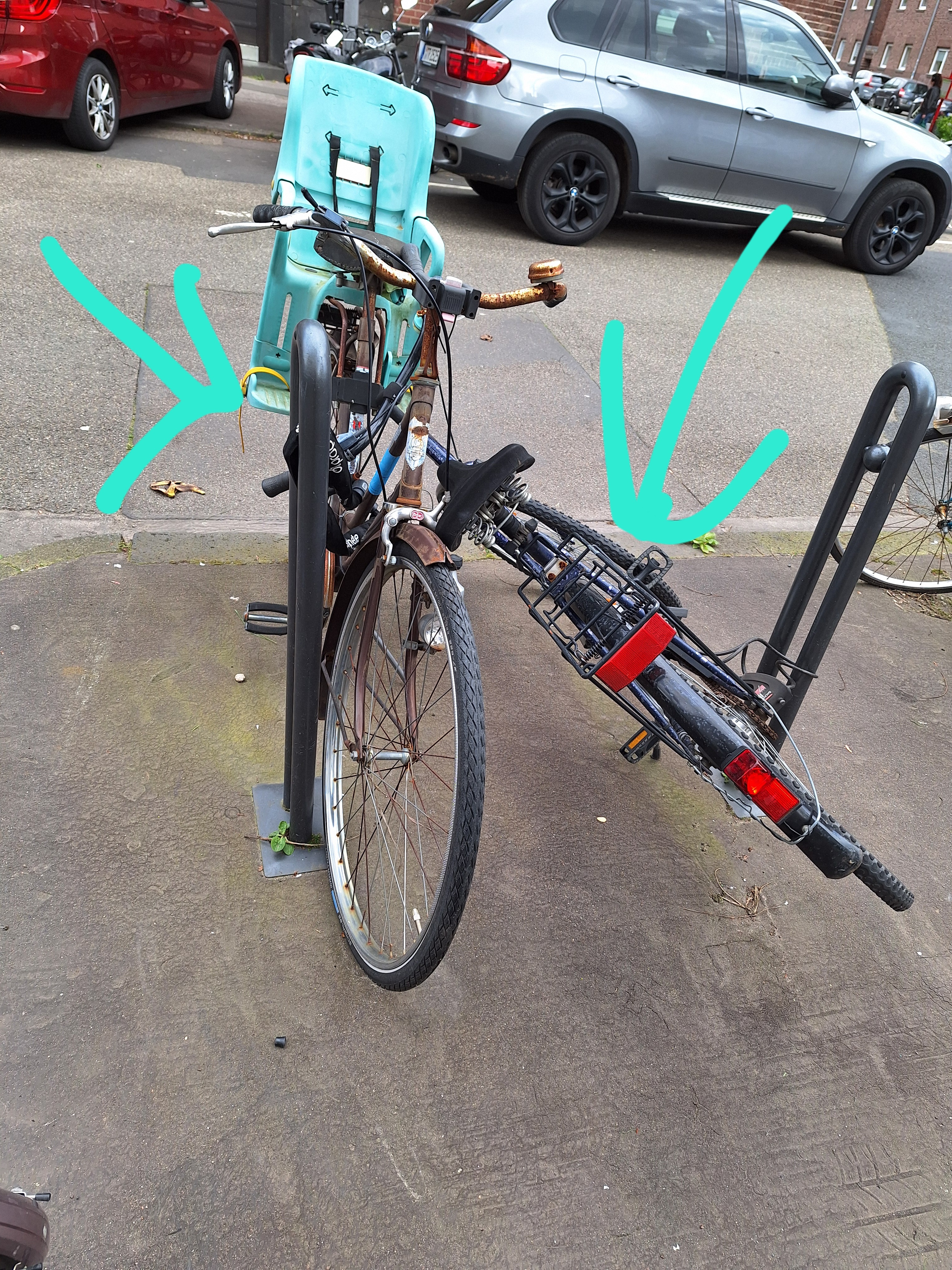 Auch diese beiden Fahrrader blockieren seit langer Zeit die Fahrradständer.