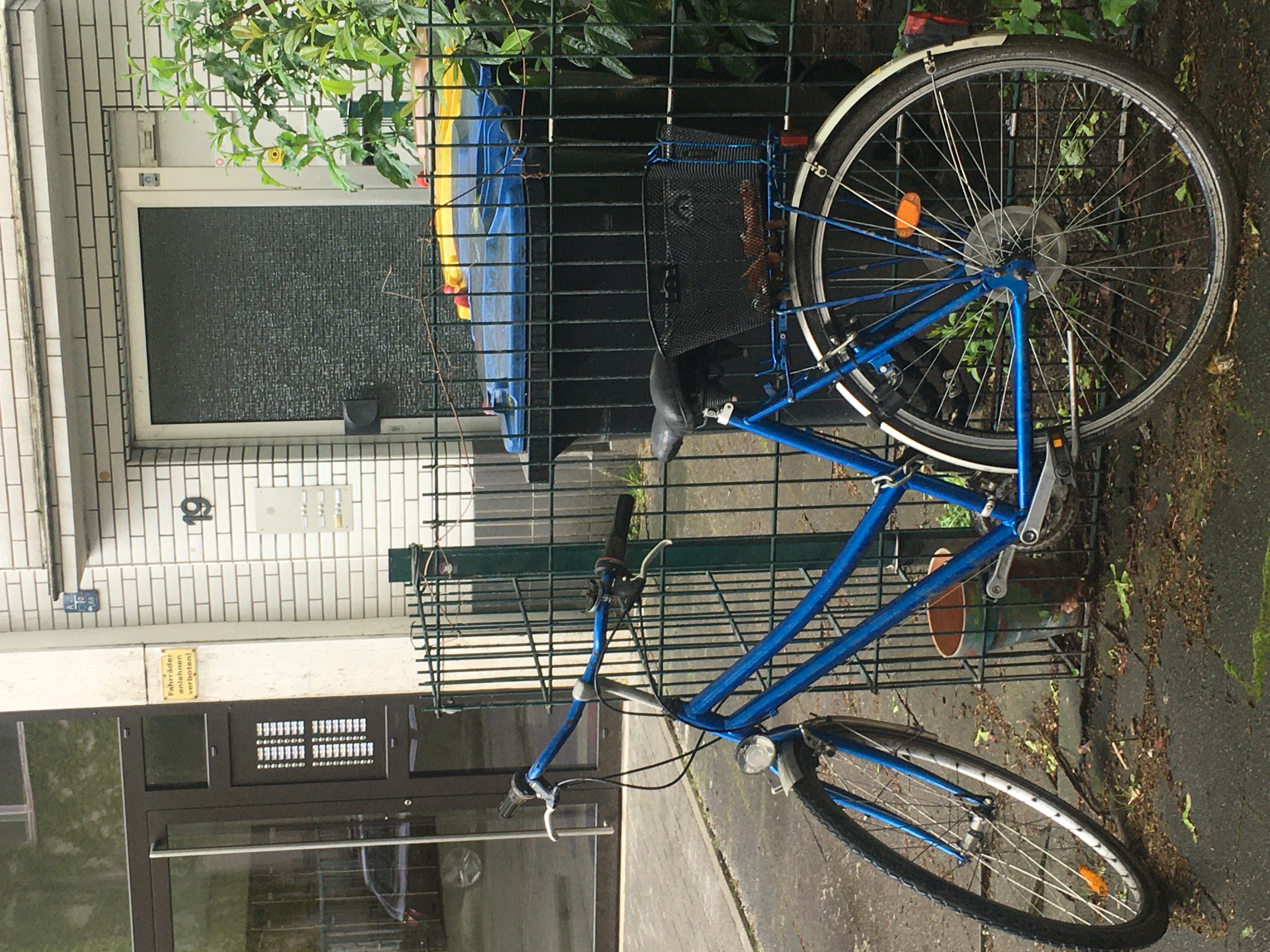 Das blaue Fahrrad steht schon lange da u ist am Zaun befestigt. Ein anderes Fahrrad, was da steht, kann schon lange entsorgt werden. Der gelbe Zettel klebt schon dran.