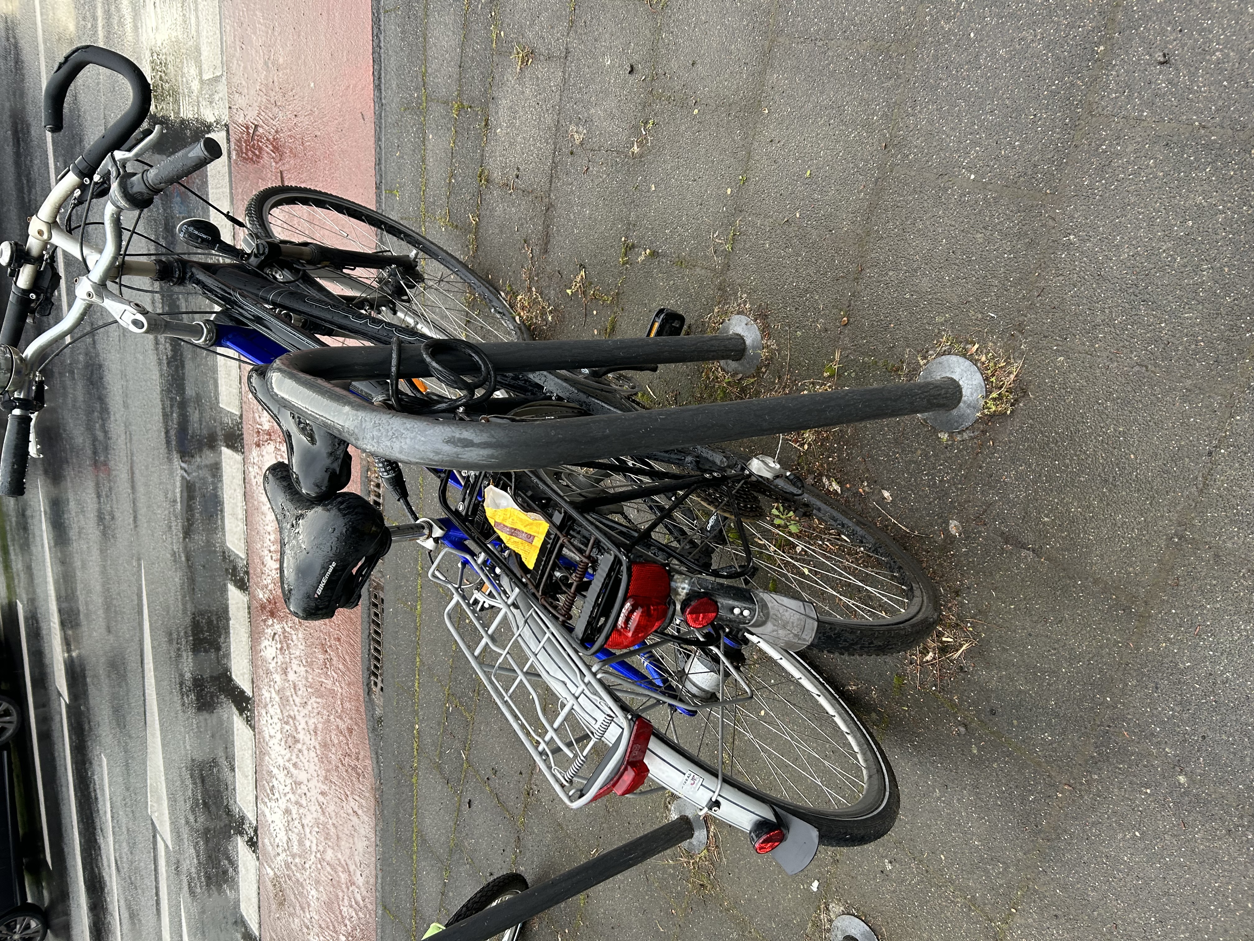 Schrotträder neben weiteren blau markierten Fahrradüberresten