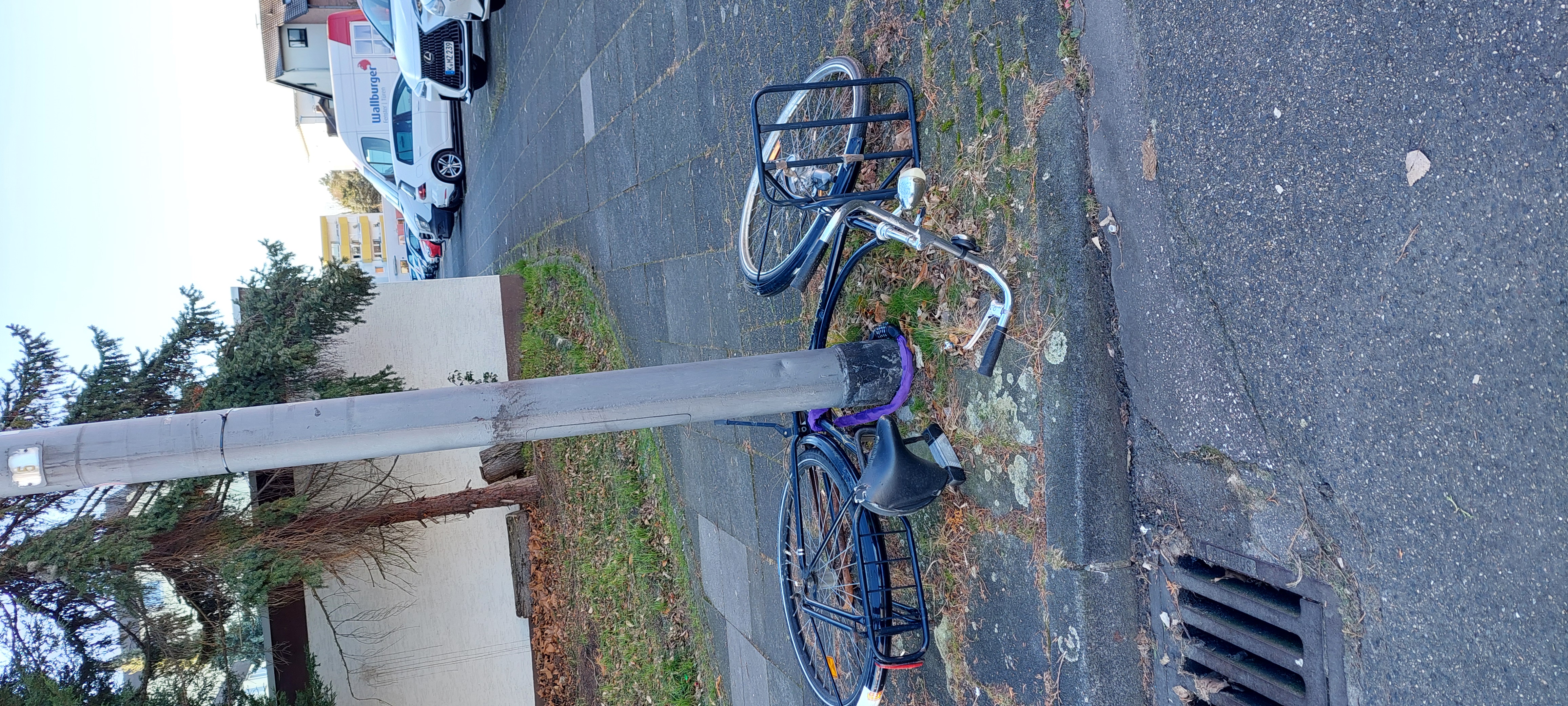 Das Fahrrad liegt nach wie vor auf dem öffentlichen Bürgersteig und ist immer noch