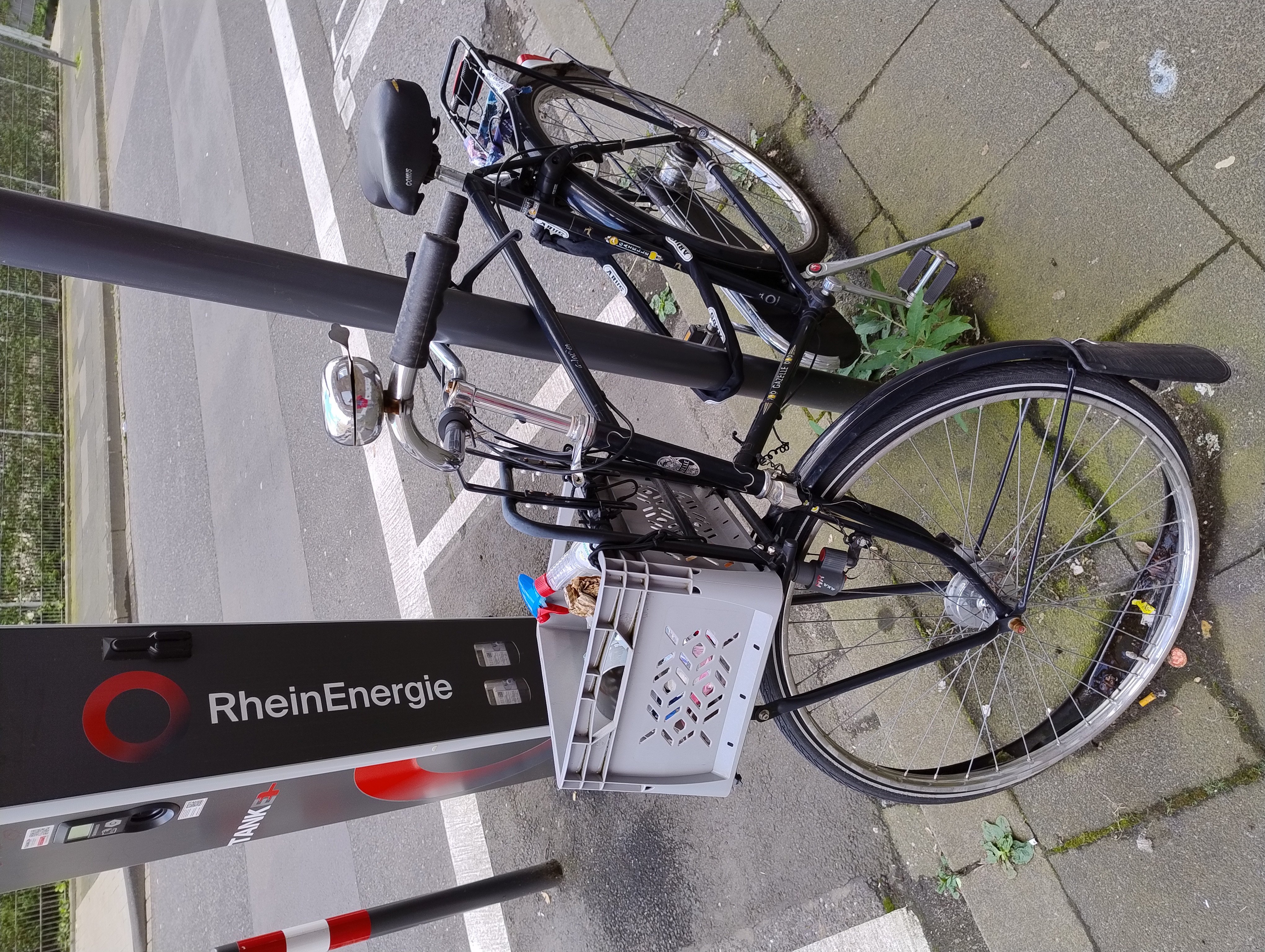 Schrottrad in der Derfflingerstr in Weidenpesch. Eins gegenüber einer Rheinenergie Ladesäule und eine am Zaun an der Derfflingerstr Straße Lobositzstr