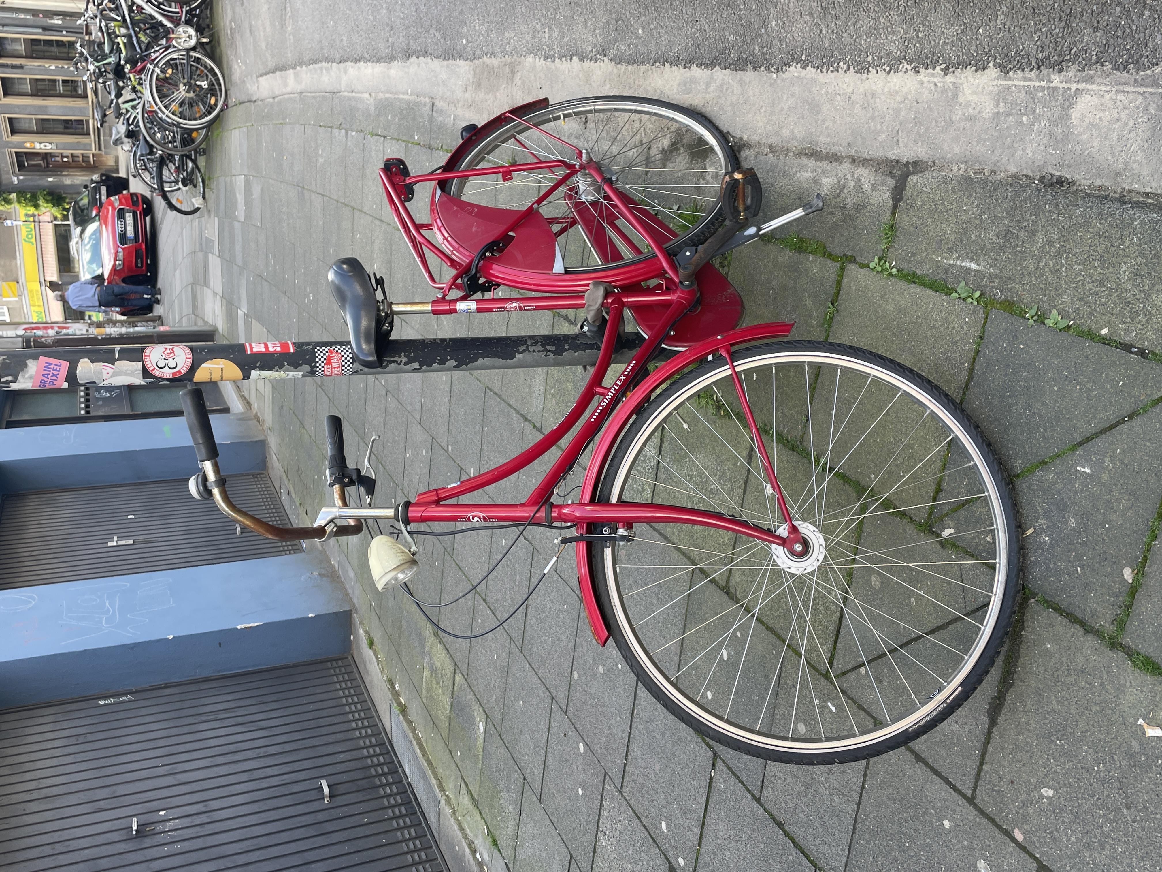 Hallo, dieses Fahrrad steht seit vielen Monaten hier rum und ist nicht mehr in Benutzung, behindert aber täglich beim Ausfahren aus unserer Garage. Der Besitzer ist leider nicht ausfindig zu machen. Ein Verkehrsschild ist nun auch kein Fahrradständer !
