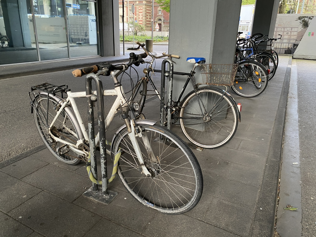 An den Fahrradständern unterhalb des WDR Vierscheibenhauses zwischen Appellhofplatz und „Auf der Ruhr“ gammeln immer mehr Fahrräder ohne Sattel oder fahruntüchtig vor sich hin. Am Besten sind sie früh morgen zu erkennen, dann sind es fast die einzigen, die dort stehen.