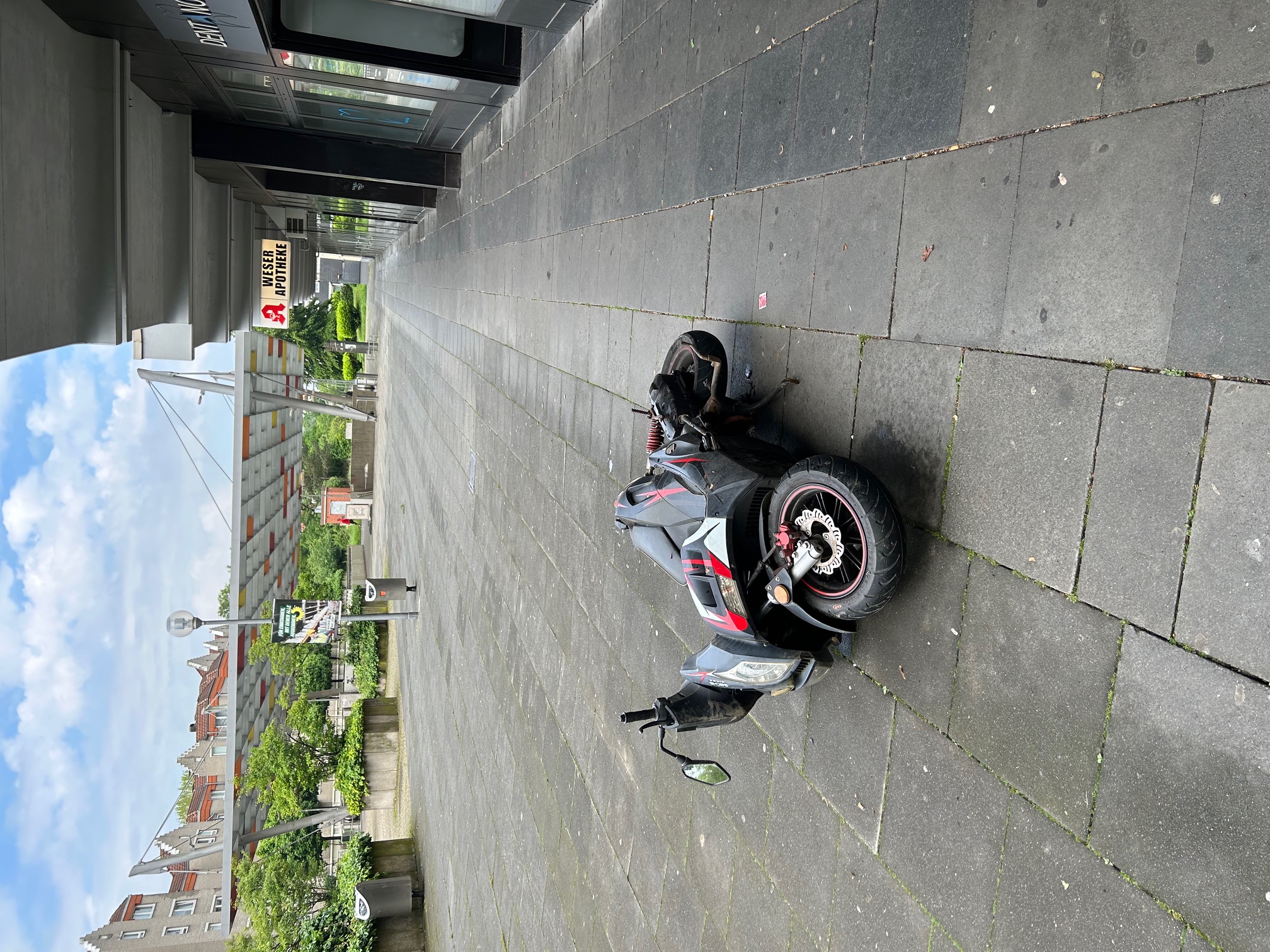 Auf dem Weserplatz in Höhe vom Haus Warthestr. 24 liegt ein unangemeldeter Motorroller rum.