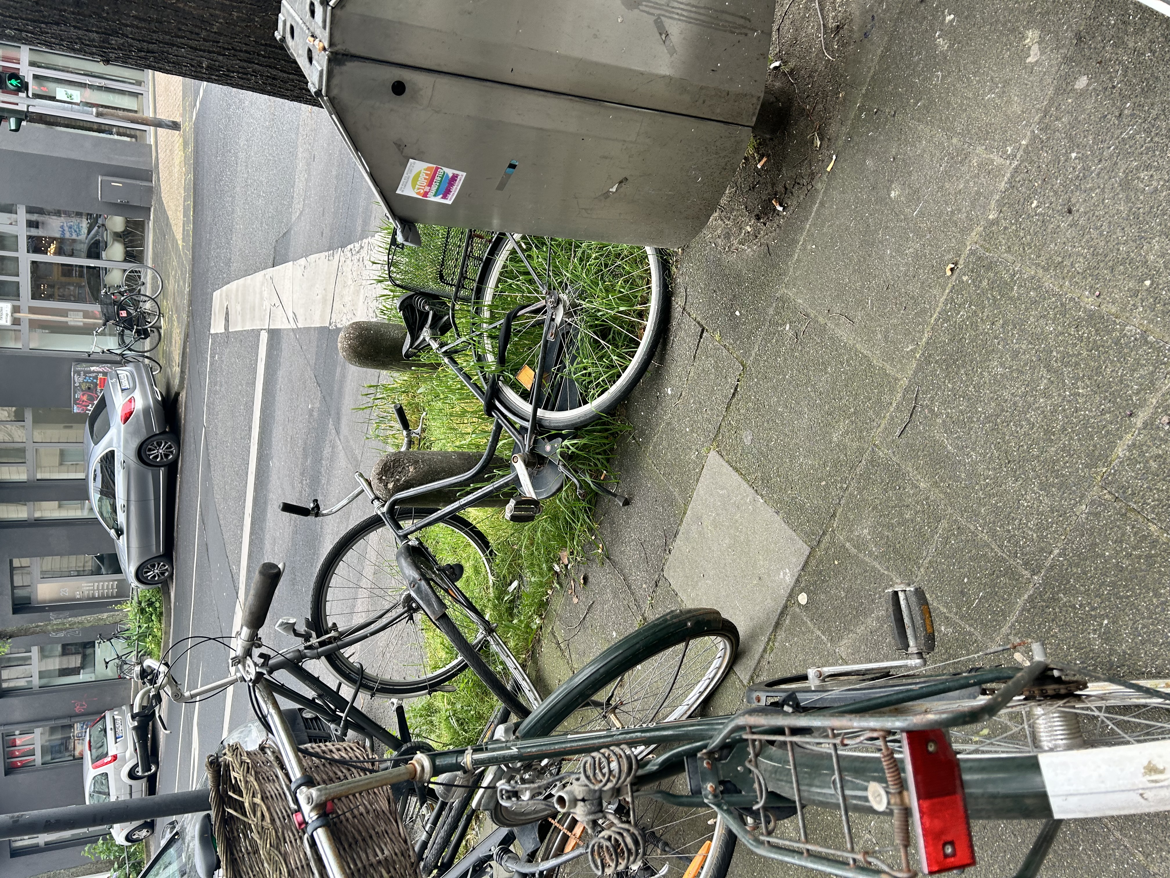Hallo, hier liegt ein schwarzes Schrottfahrrad. Danke fürs Kümmern