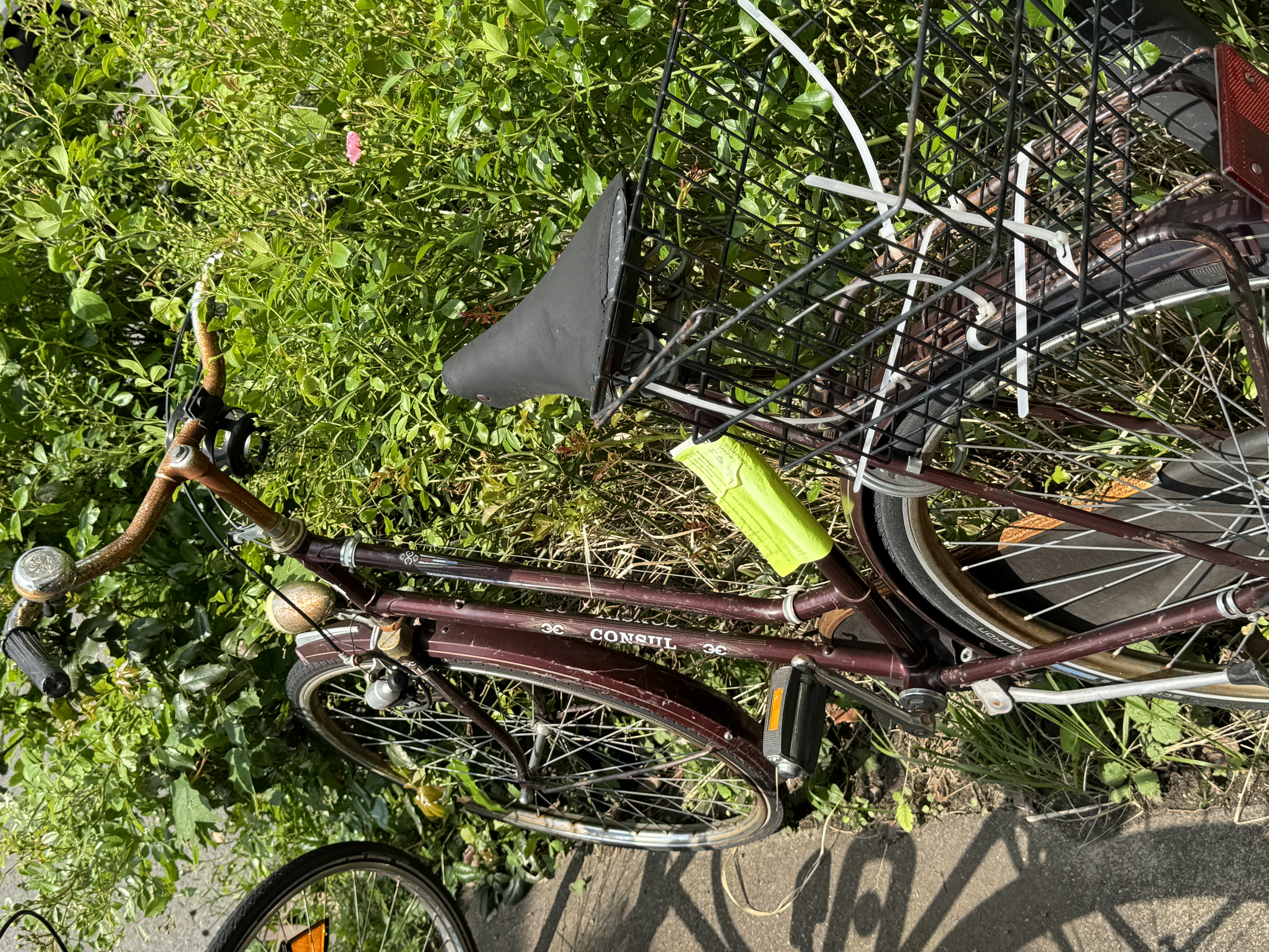 Bereits markiertes Schrottrad kann abgeholt werden, die Frist auf dem gelben Zettel ist am 06.05.2024 abgelaufen.