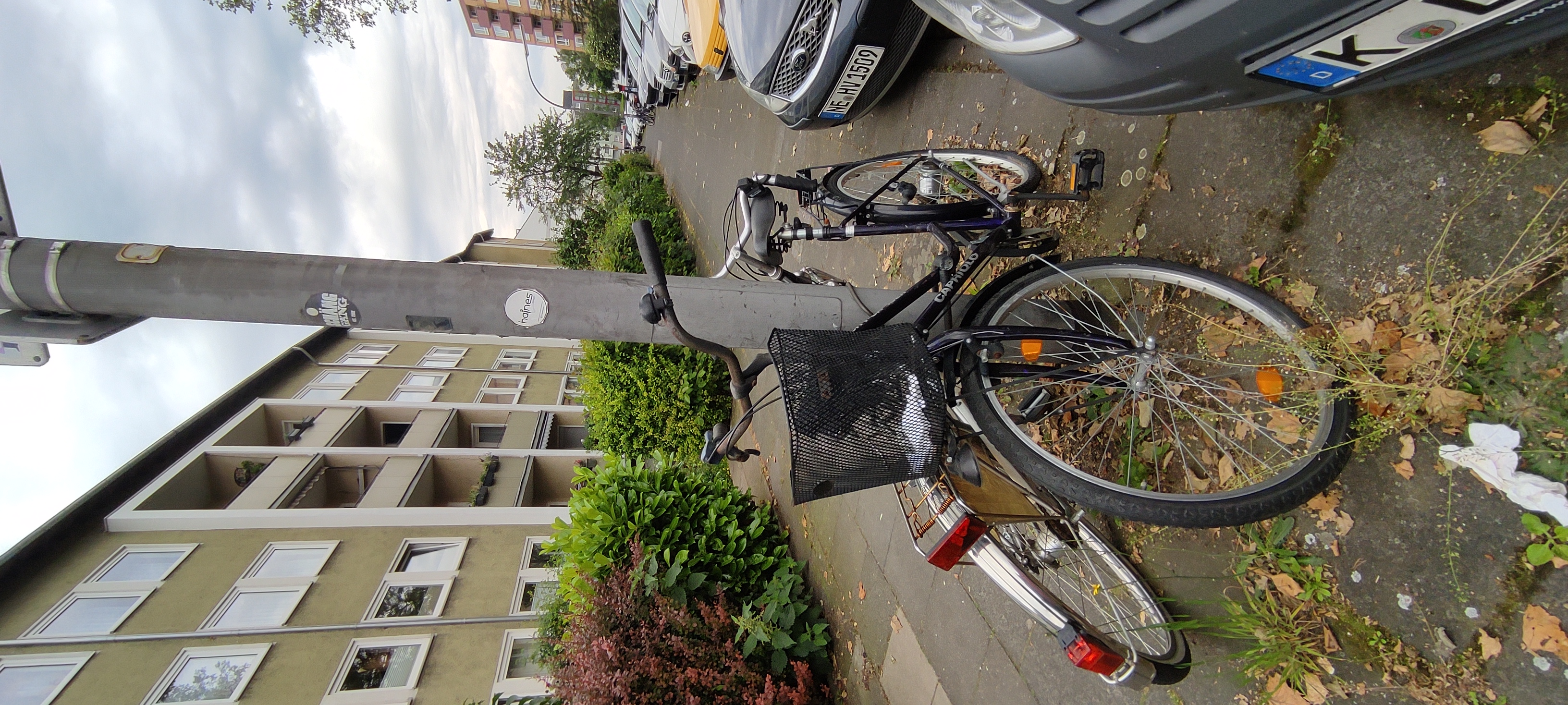 An der Straßenlaterne vor Haus Nr. 13 stehen schon seit sehr langer Zeit 2 Fahrräder die nicht mehr bewegt werden.