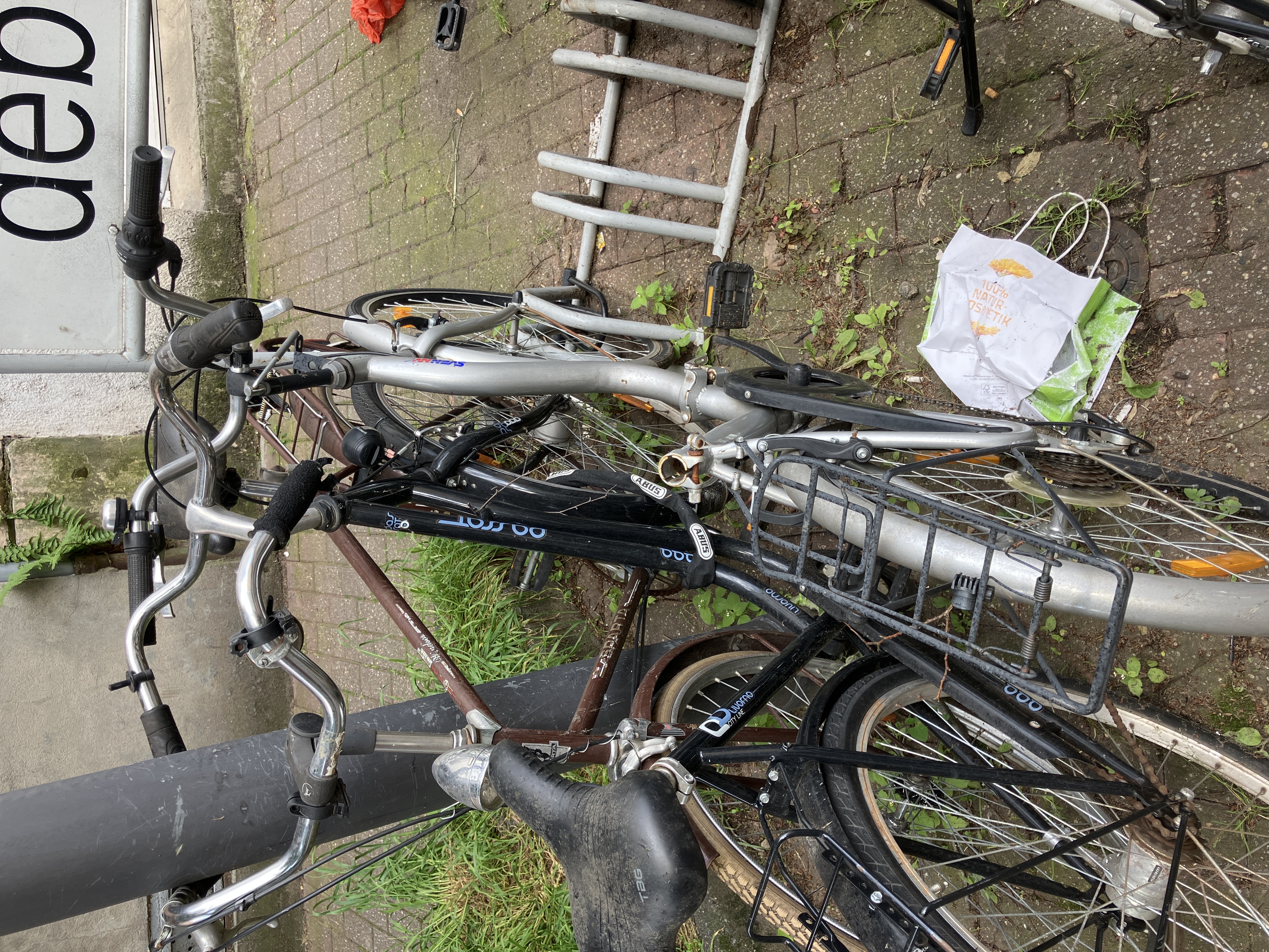 3 Schrotträder an einem Debitel Ständer, direkt neben den 5 anderen Schrotträdern am Baum