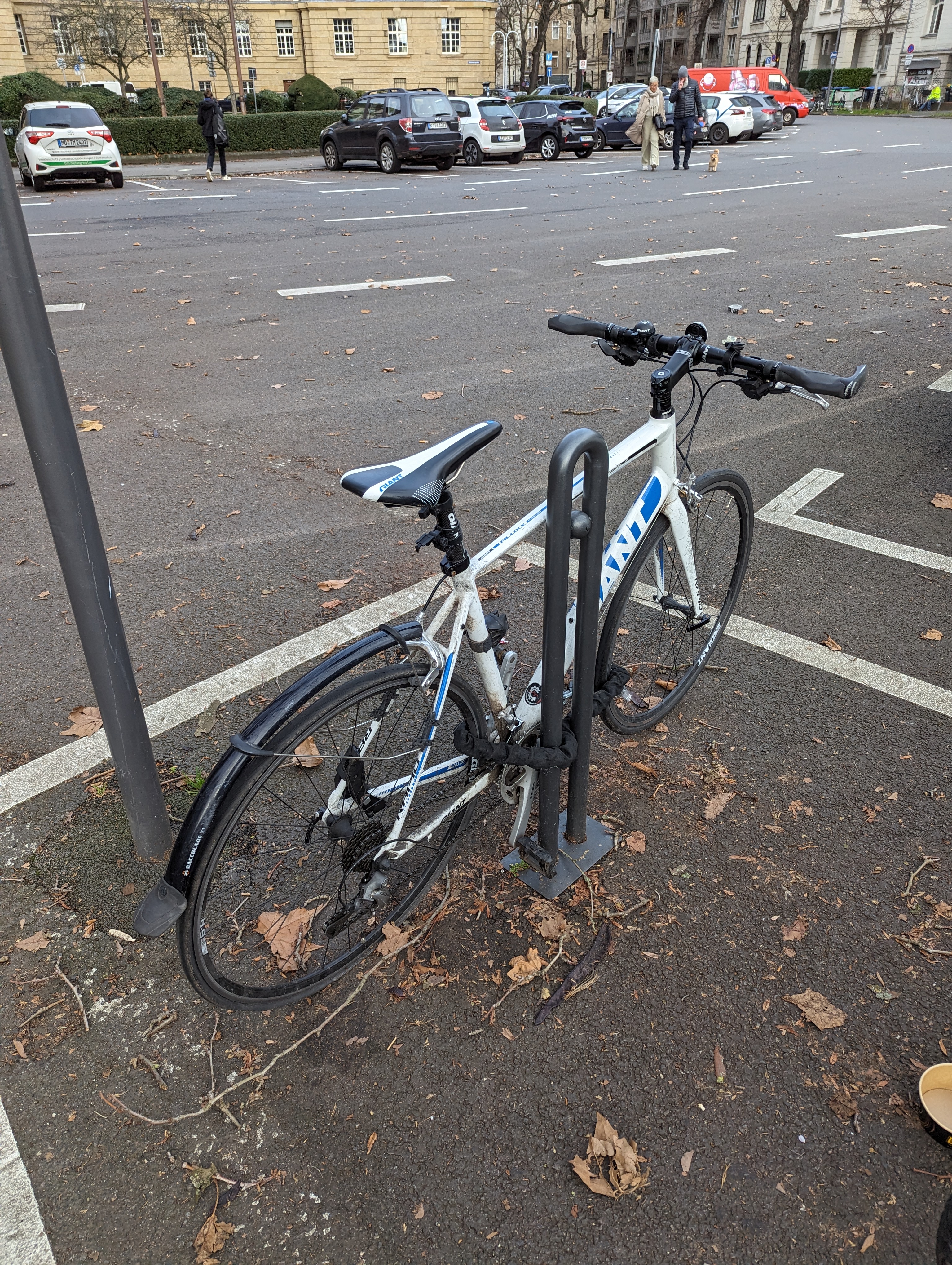 Schrottfahrrad vor dem Amtsgericht, steht dort schon mehrere Wochen, wenn nicht Monate. Hinterrad hat einen Platten.