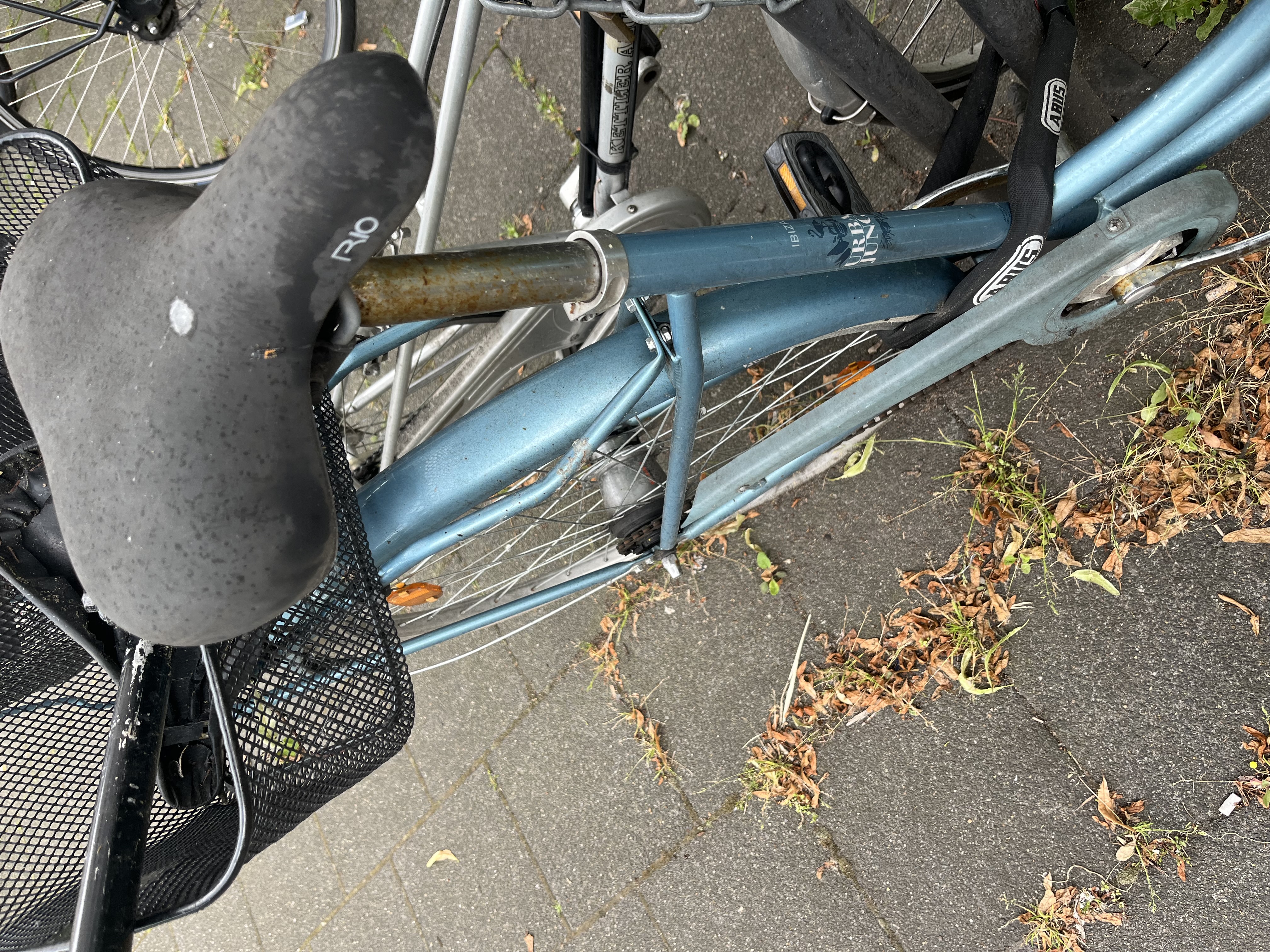 Hier stehen zwei Platte verrostete Fahrräder die seit Jahren nicht mehr benutzt werden an den Fahrradständern und blockieren diese. Die werden nicht mehr bewegt und sollten entsorgt werden damit der platz frei wird.