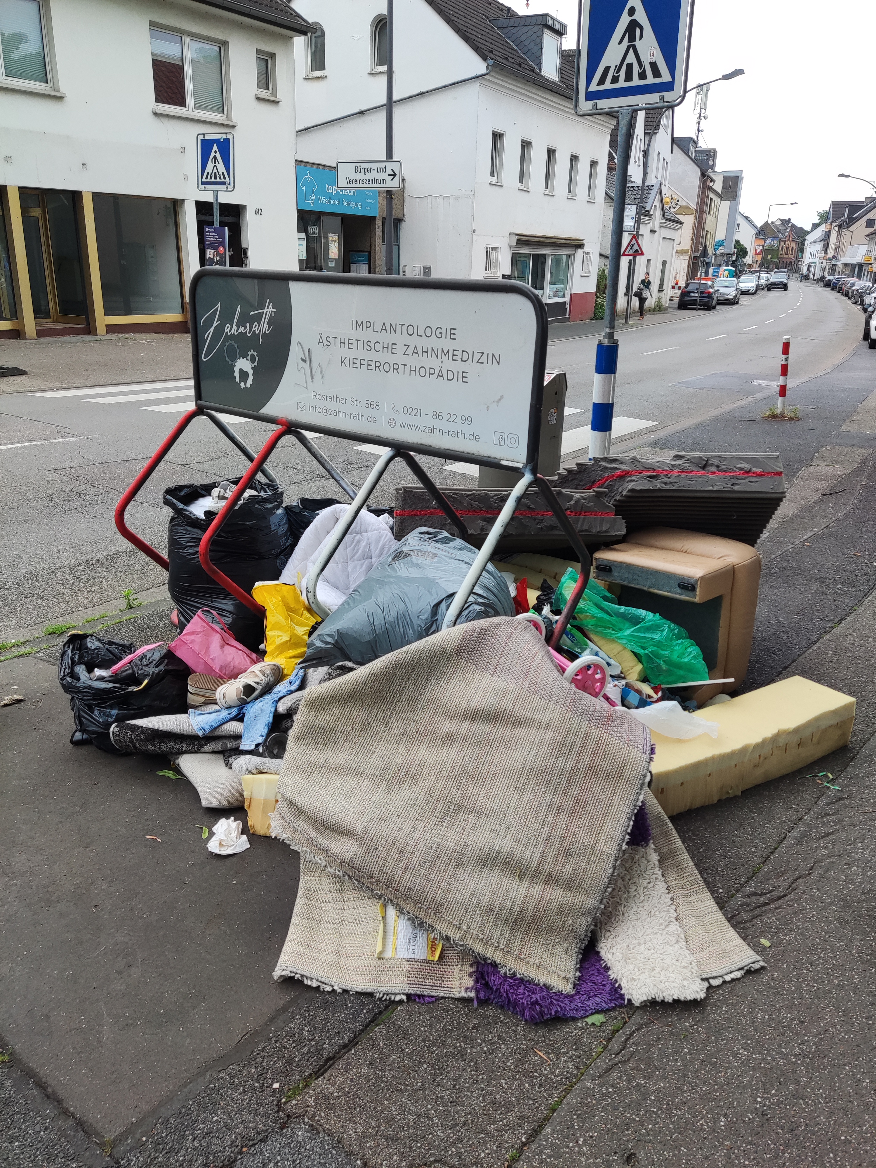 Liegt alles am Fahrradständer neben dem Zebrastreifen und gegenüber Haus Nr. 612 in Rath Heumar.