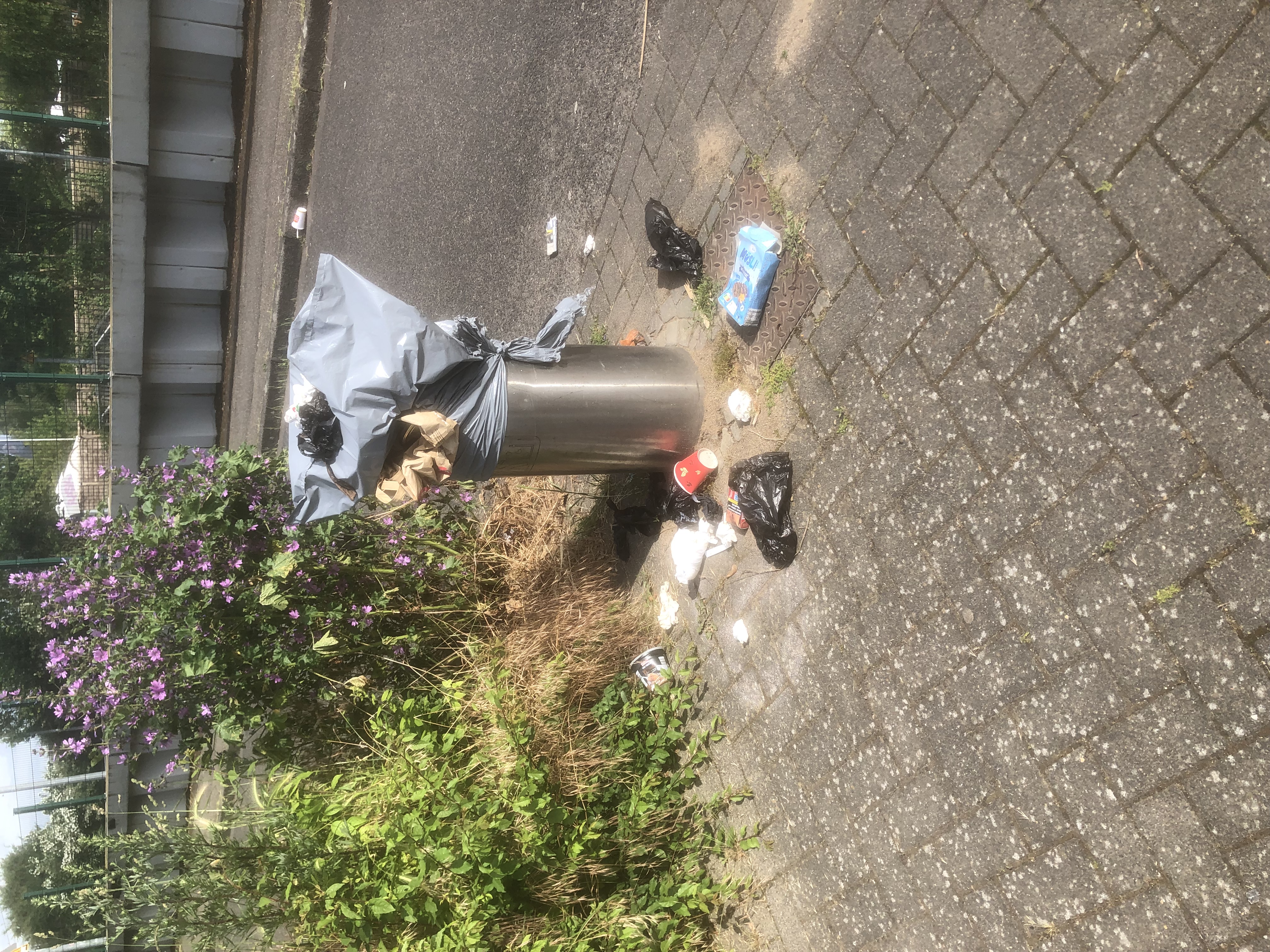 Seit Tagen überquellender Abfallbehälter.