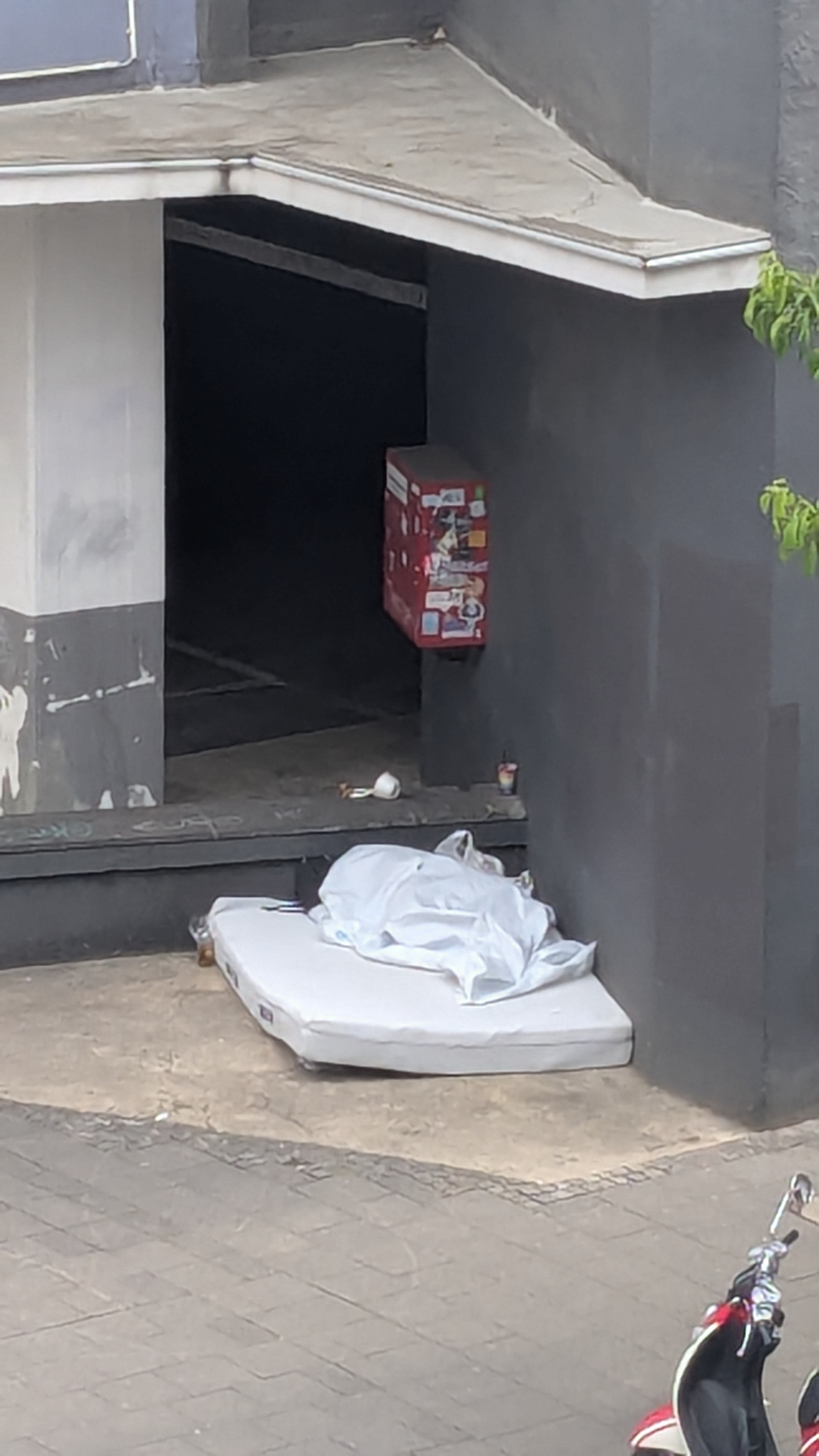 Seit ein paar Tagen liegt vor dem Parkhaus Maastrichter Straße eine Matratze, die mittlerweile auch als Nachtlager genutzt wird.