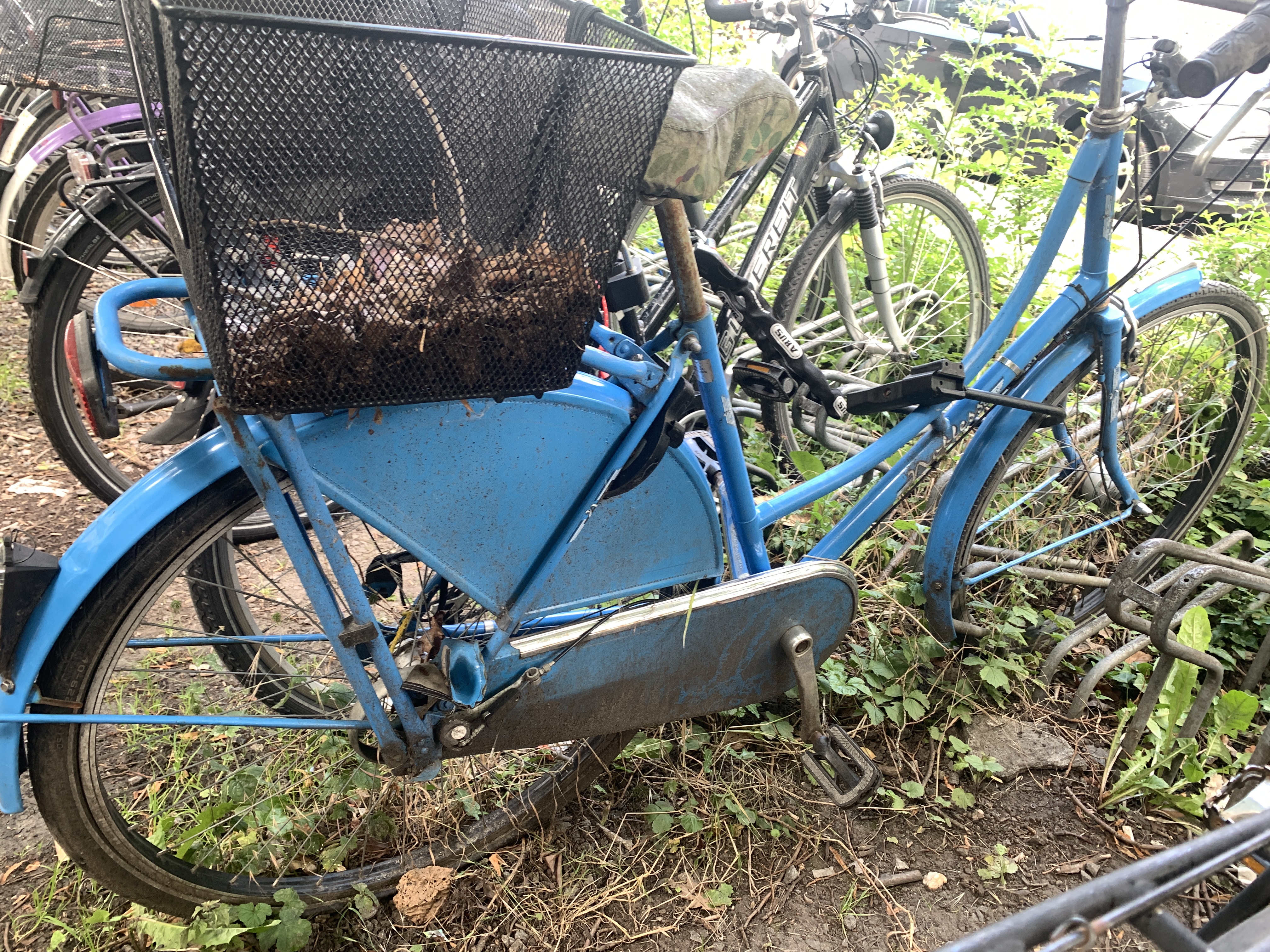 Hier steht ein blaues untaugliches Fahrrad. Ich hatte es schon mal gemeldet, ist aber noch kein Zettel dran und wittert weiter vor sich hin.
