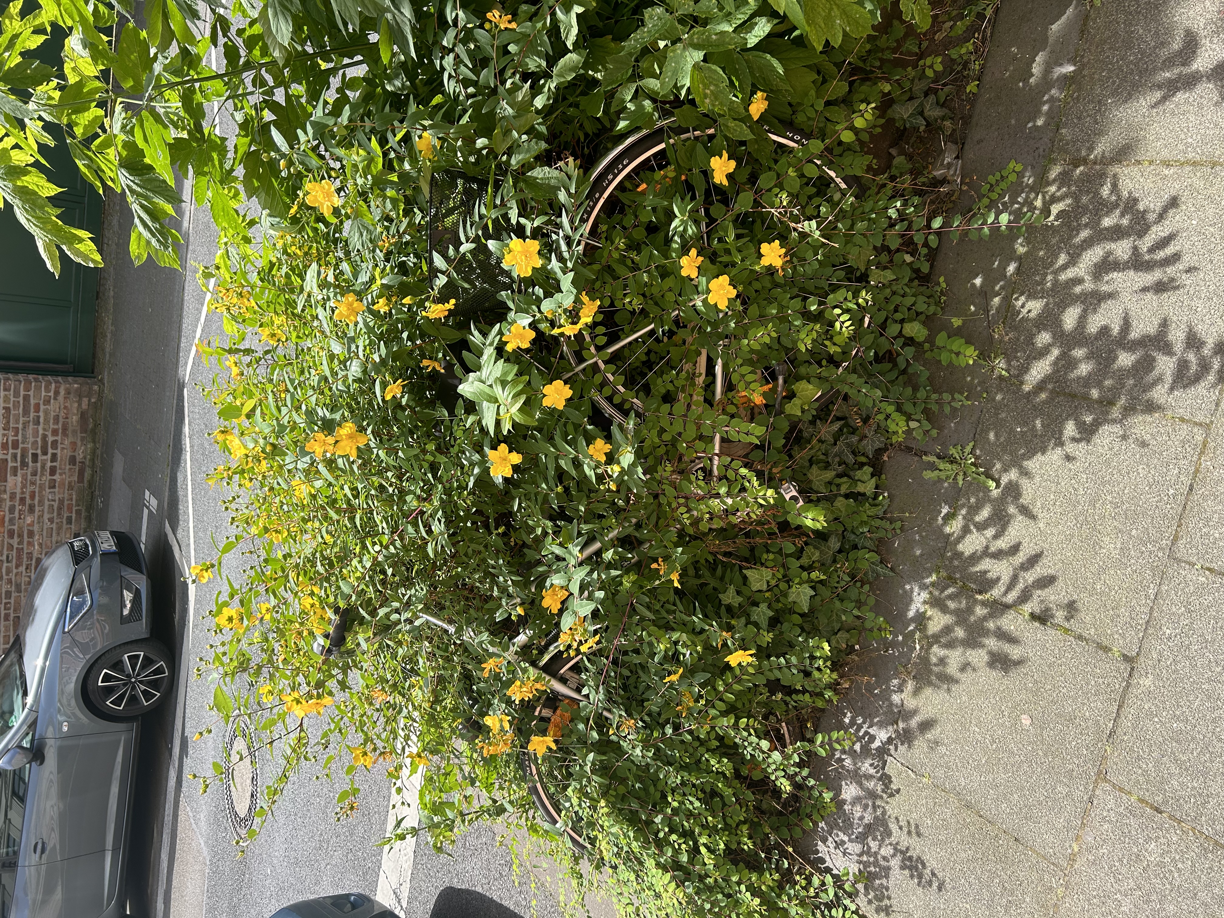 Fahrrad steht schon seit Jahren da und wächst immer mehr ein. Reifen platt, Sattel kaputt.