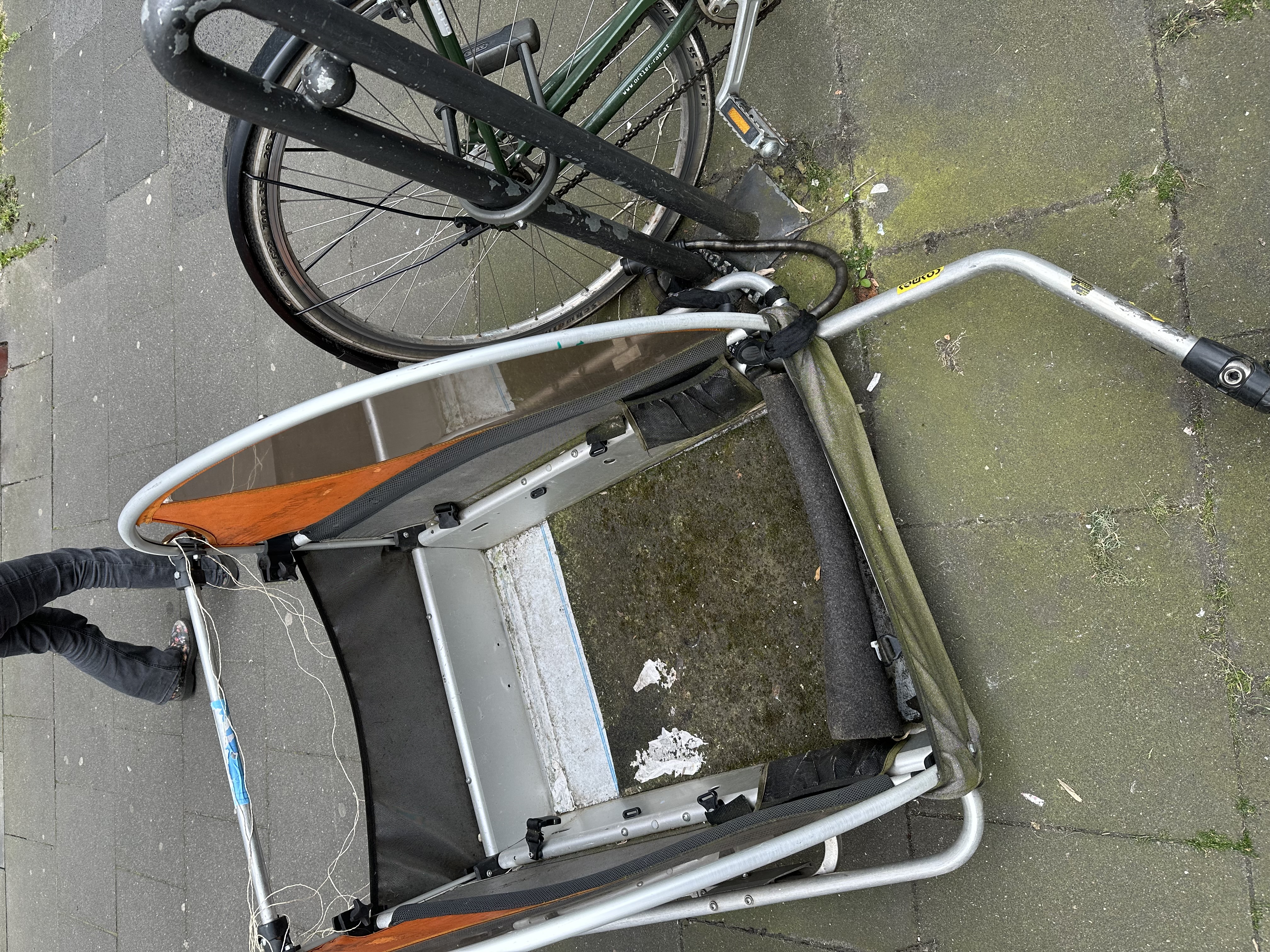 Der FahrradAnhänger steht seit vier Jahren dort und wird nicht mehr gebraucht.