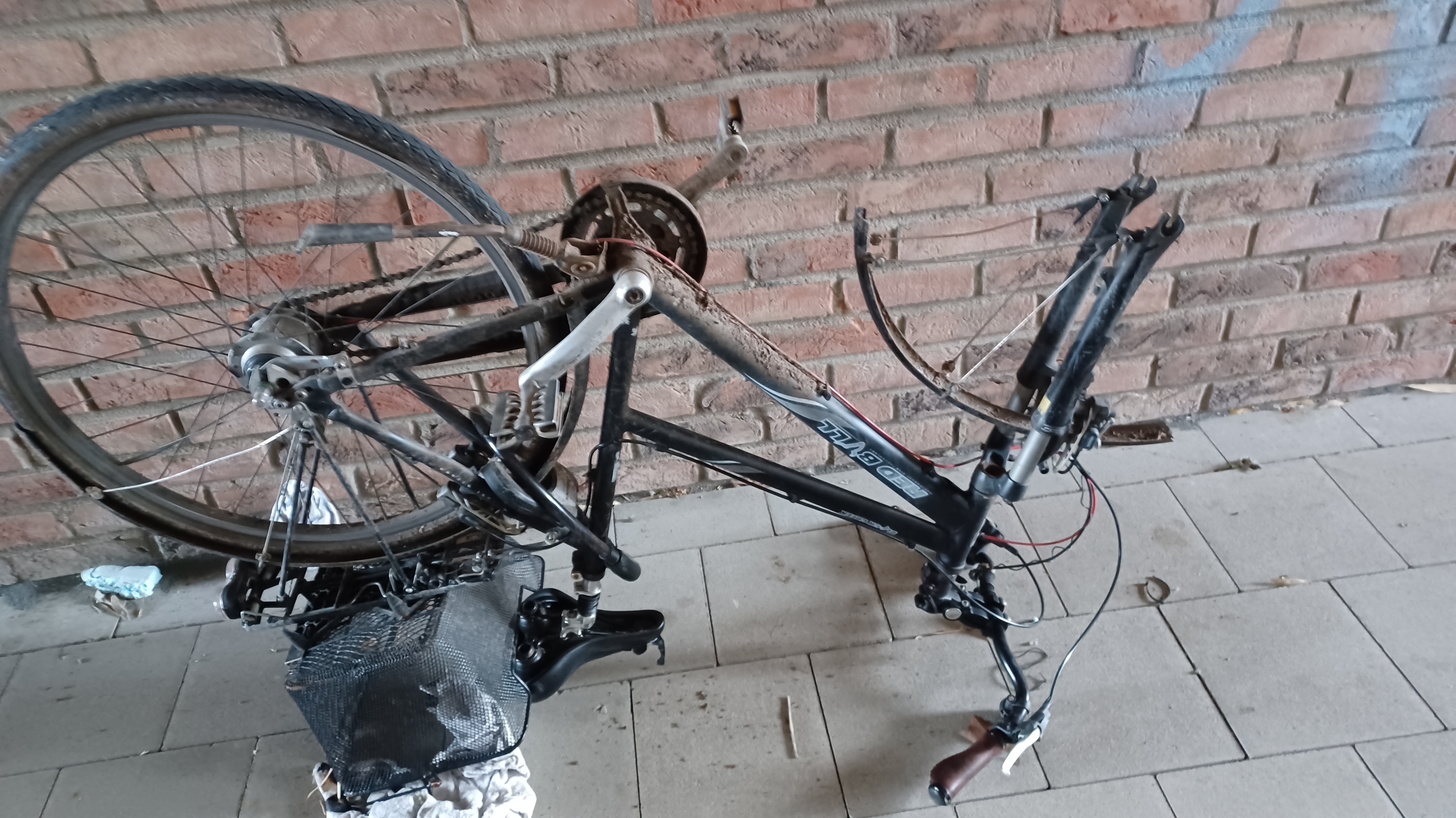 Im Tunnel der Rather Schulstr. steht seit Wochen ein abgeschlossenes Fahrrad. Seit vorgestern steht es auf dem Kopf und das Vorderrad fehlt.