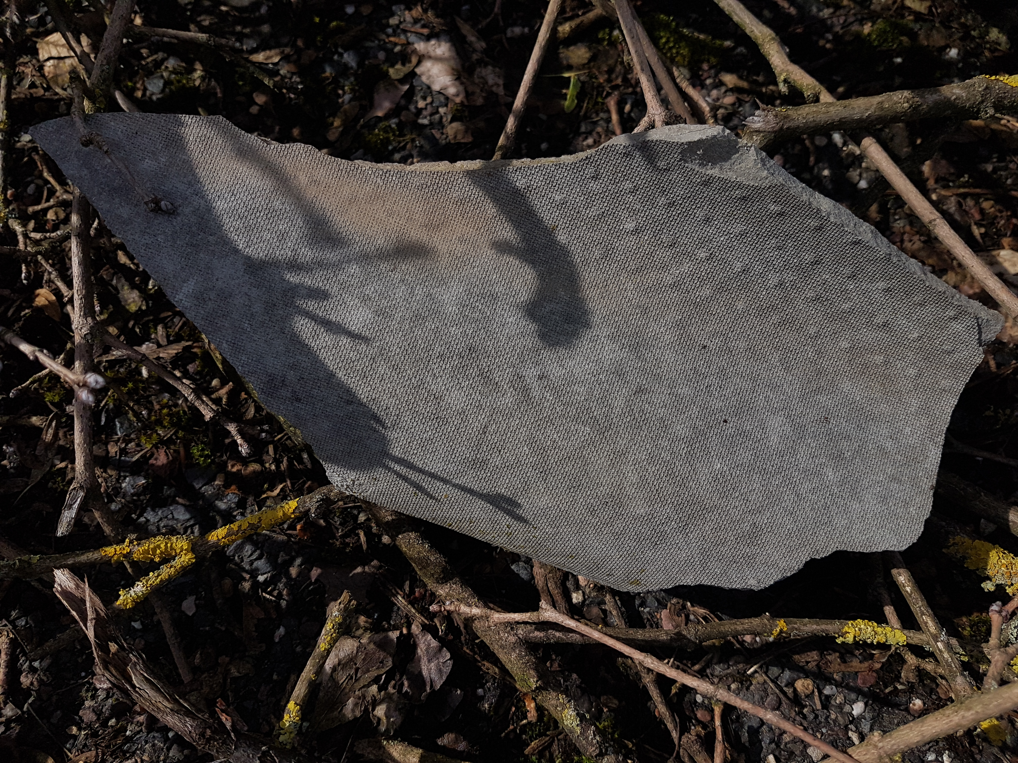 Eternit? Dachwellen-Teil liegt Ecke Müllergasse/Müllergasse am Straßenschild. Hatte ich schonmal gemeldet. Sondermüll?
