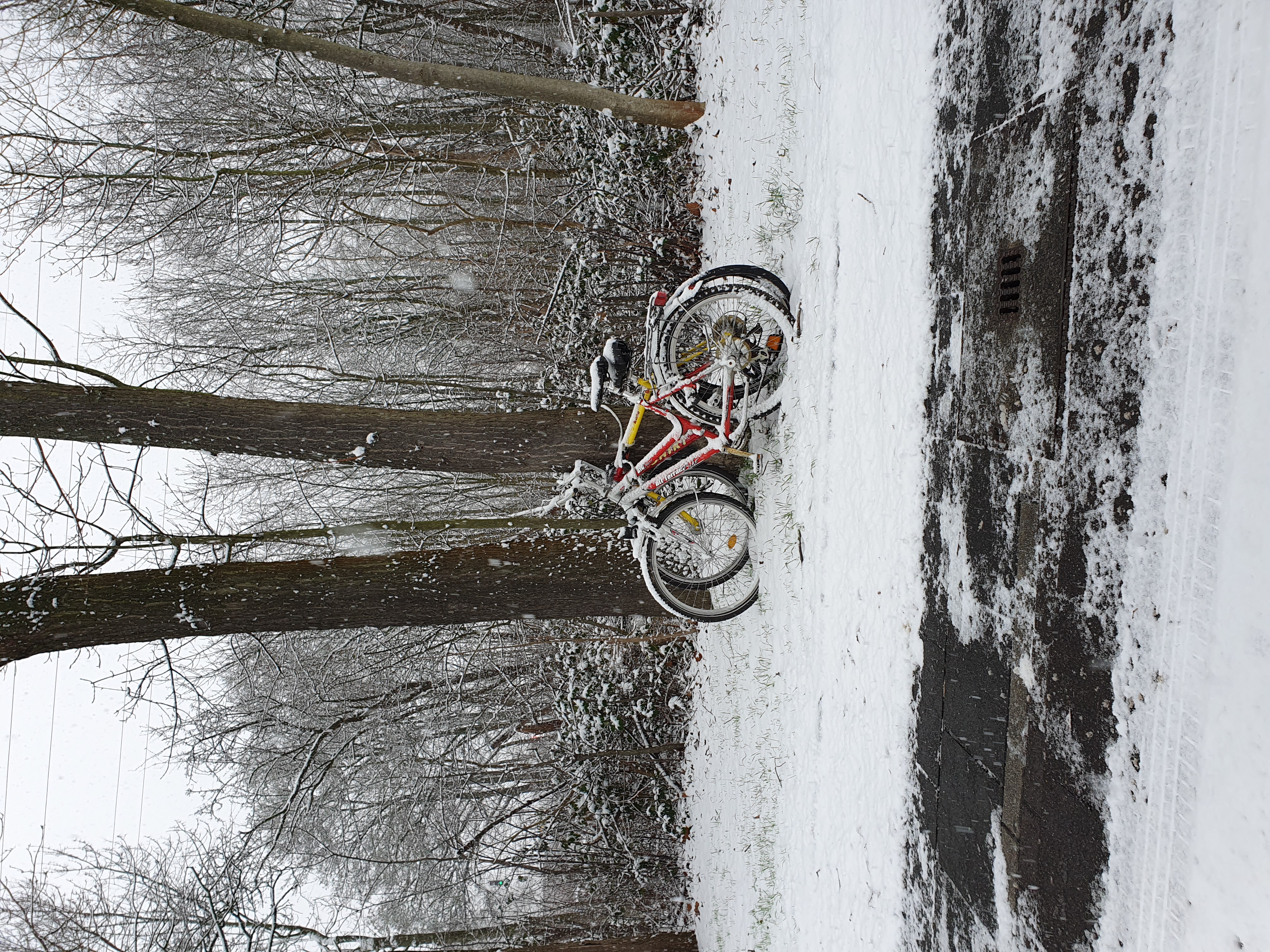 Seit mehreren Wochen sind 2 Fahrräder an einem Baum angekettet und rosten vor sich hin.