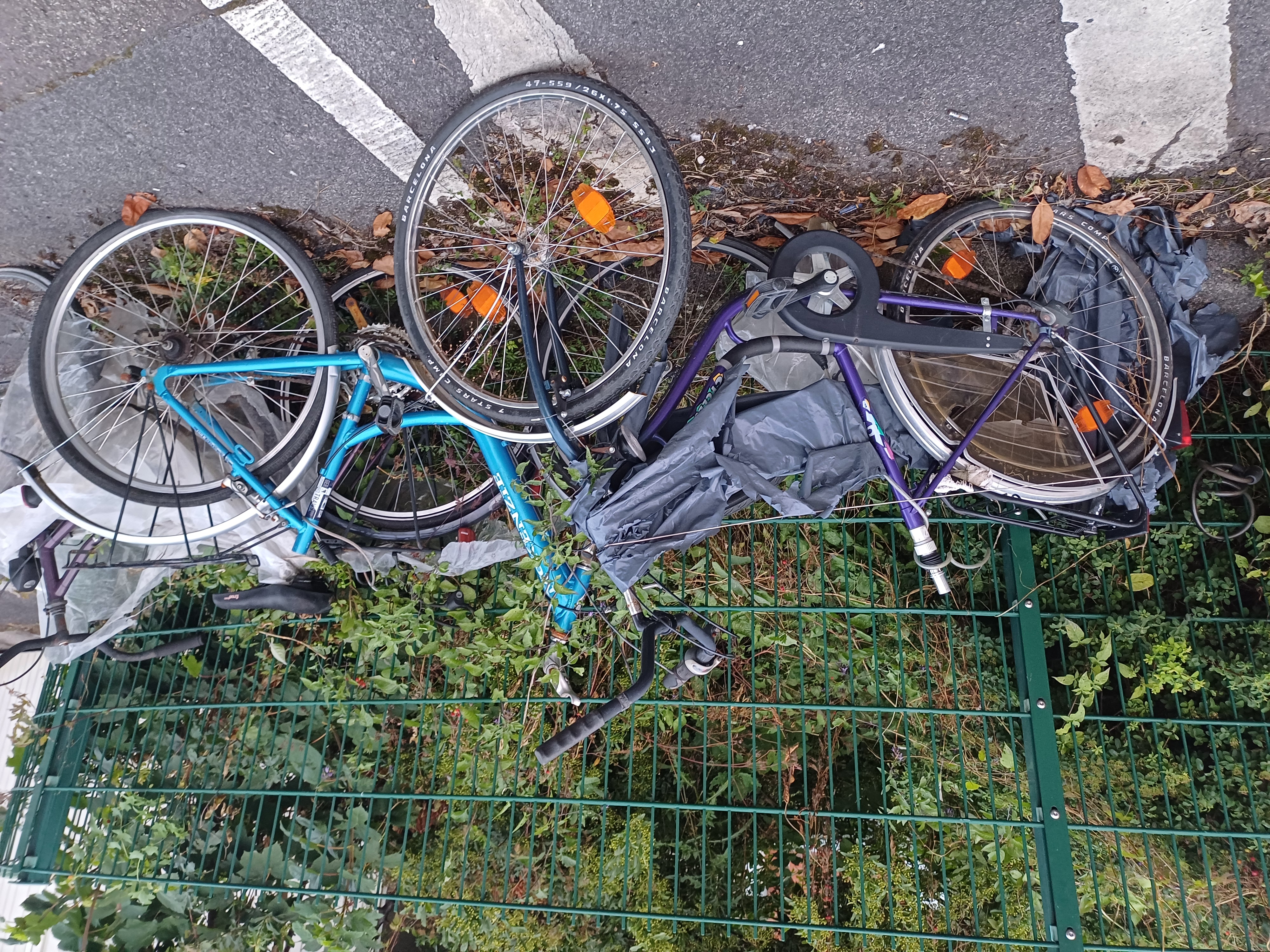 Mehrere angekettete, versammelte Räder am Zaun, deren Zustand sich weiter verschlechtert Neu Schrottfahrräder Zweibrücker Str. 13 50739 Köln - Bilderstöckchen Deutschland Statusvermerke Das Anliegen wurde erstellt. Neu Fr., 12.07.2024 - 16:21