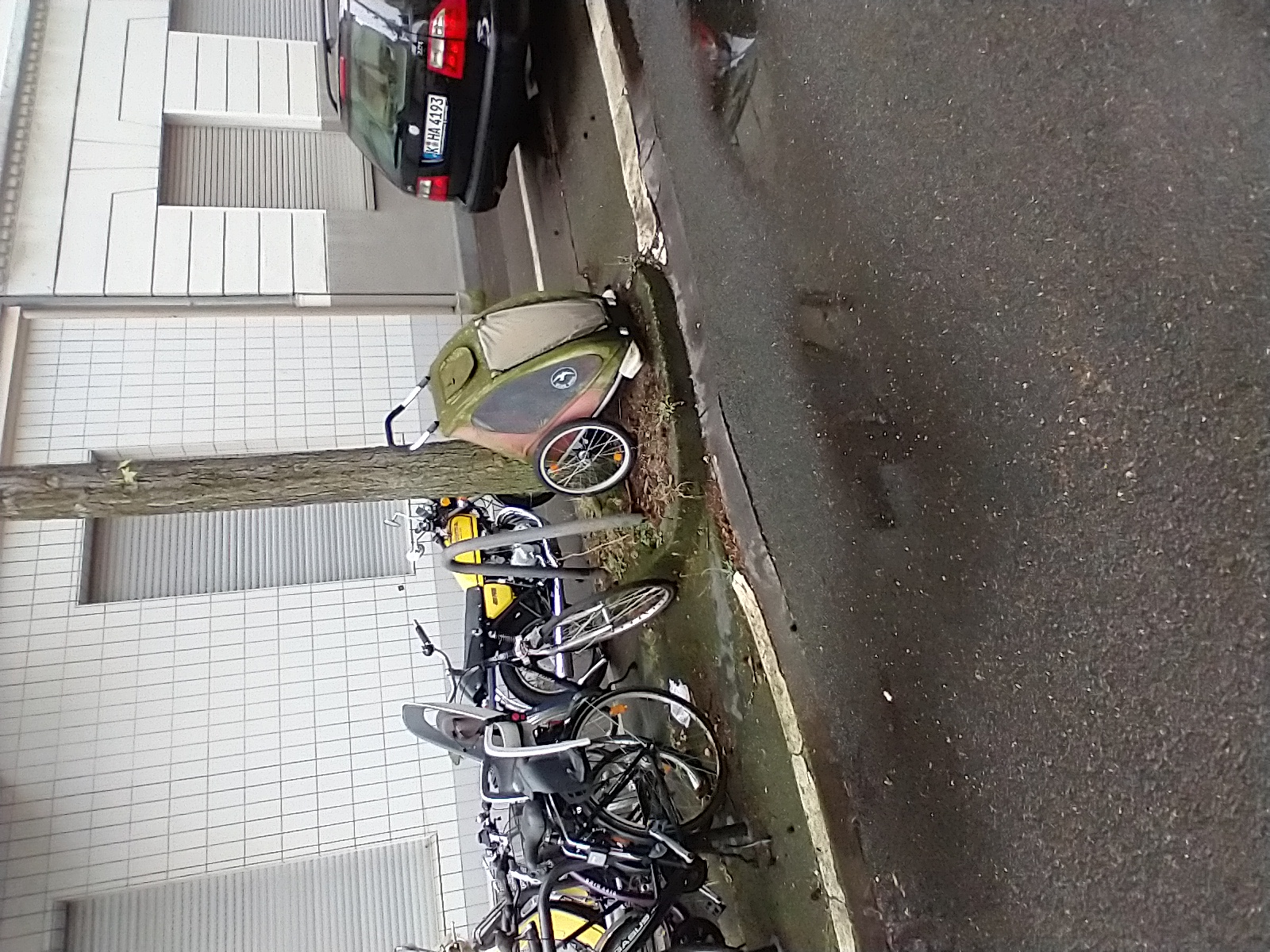Hallo, an der Ecke Chamissostrasse und Nussbaumer Strasse steht schon sehr lange ein Anhänger für Kinder (Fahrrad). Das Ding behindert massiv.