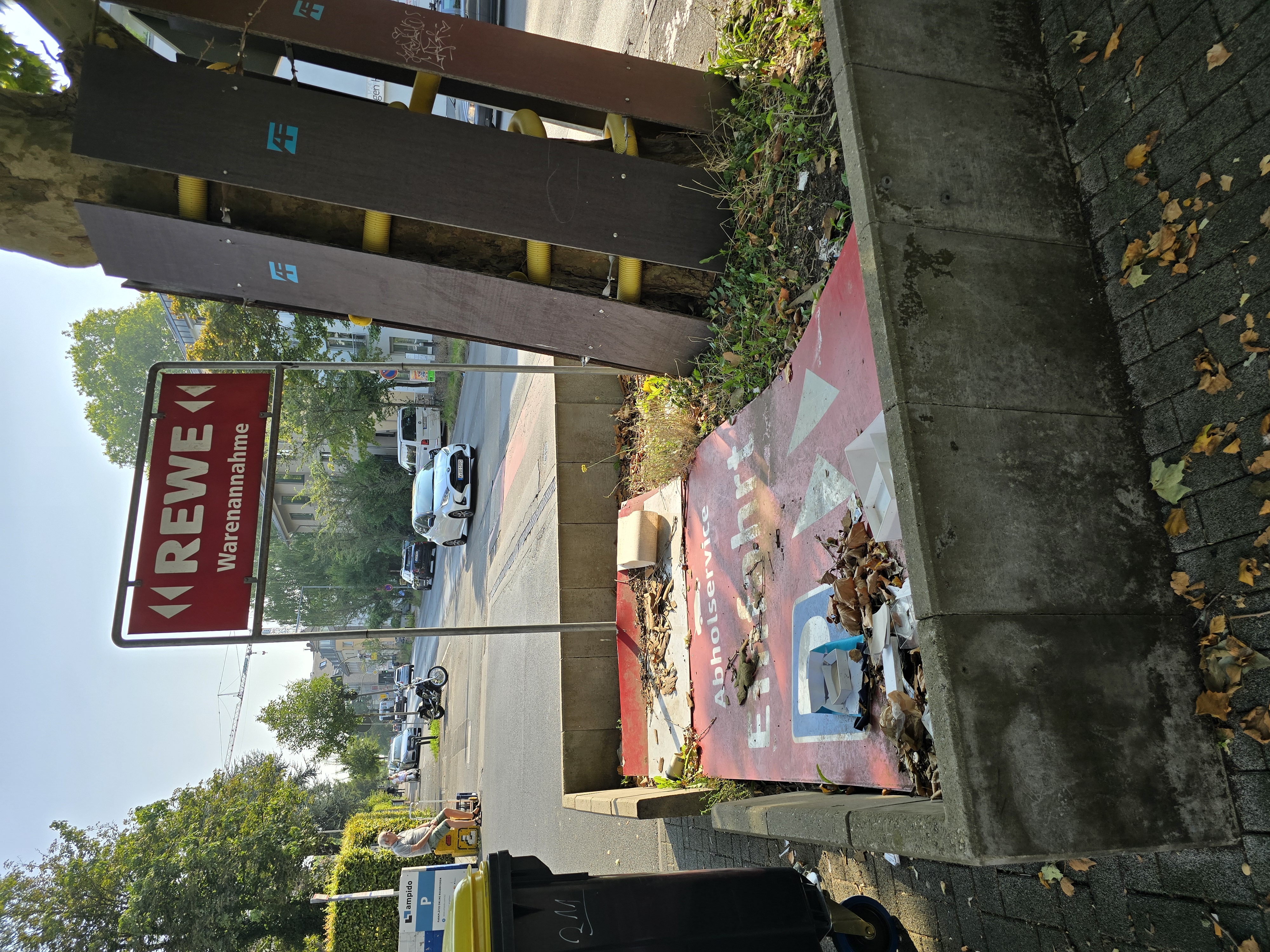 es kann doch nicht sein, dass REWE da einfach sein Werbematerial entsorgt, und die Platane nur zur Hälfte Regenwasser abbekommt. Liegt schon lange da.