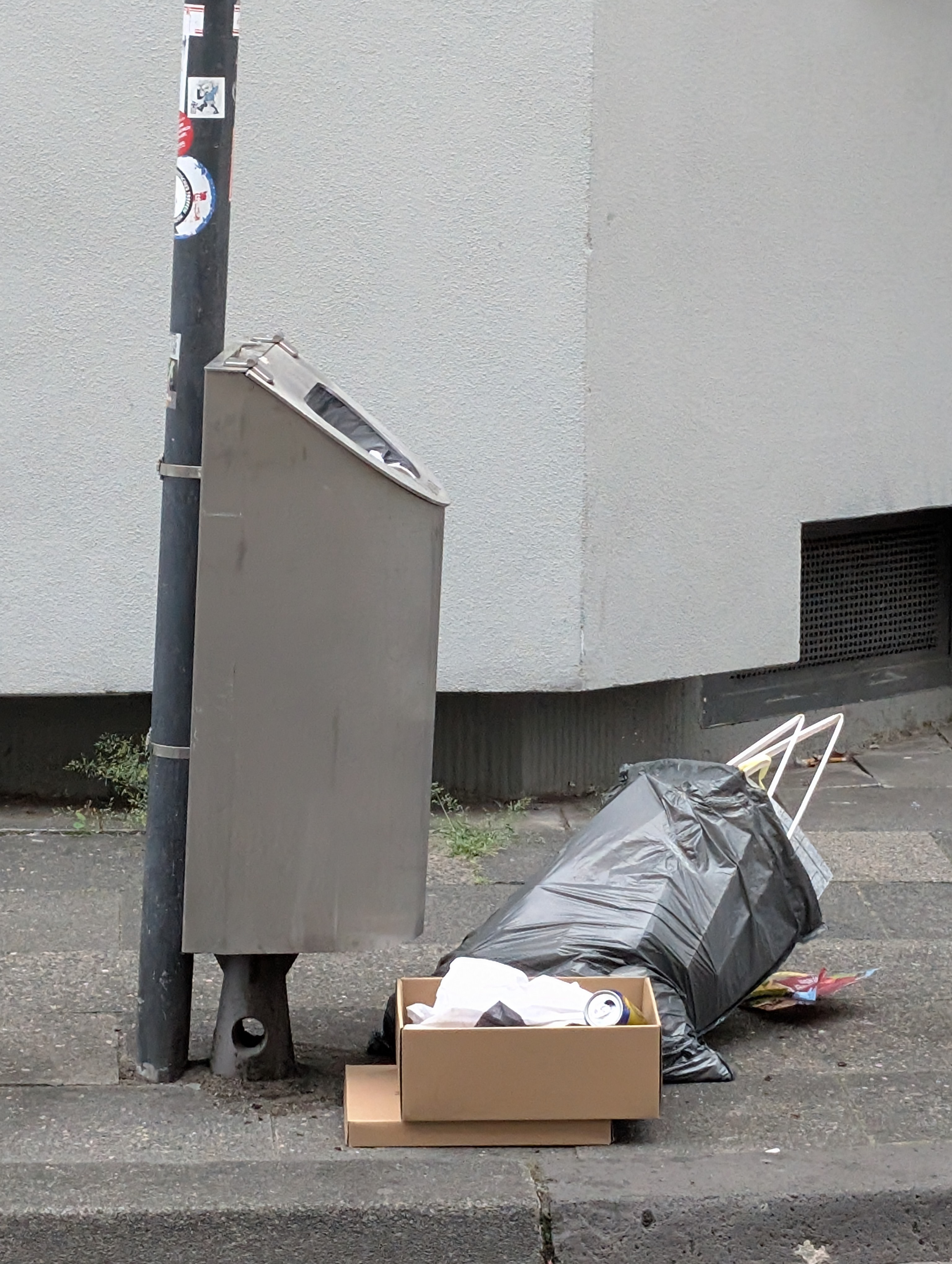Vor den Mülltonnen liegt wilder Müll