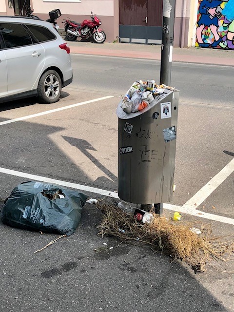 Das ist jetzt schon die 2 Woche in der dieser Müllkorb nicht entleert wurde. Direkt vor dem Historischen Archiv. Leider keine Nummer entdecken können.