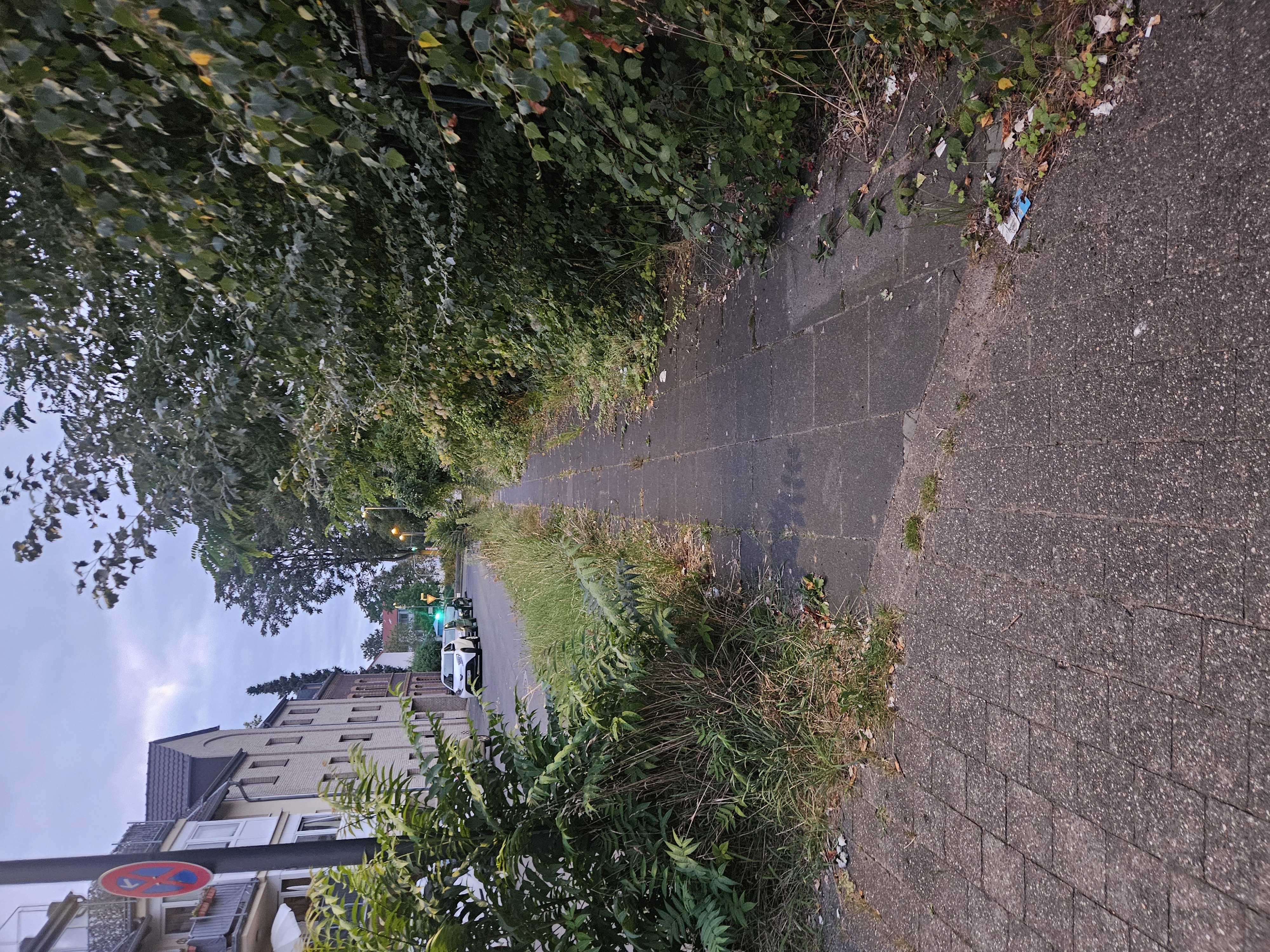 Der Gehweg an genannter Stelle, ist auf einer Länge vom 50 Metern komplett durch Wildwuchs zugewachsen und nicht mehr passierbar.