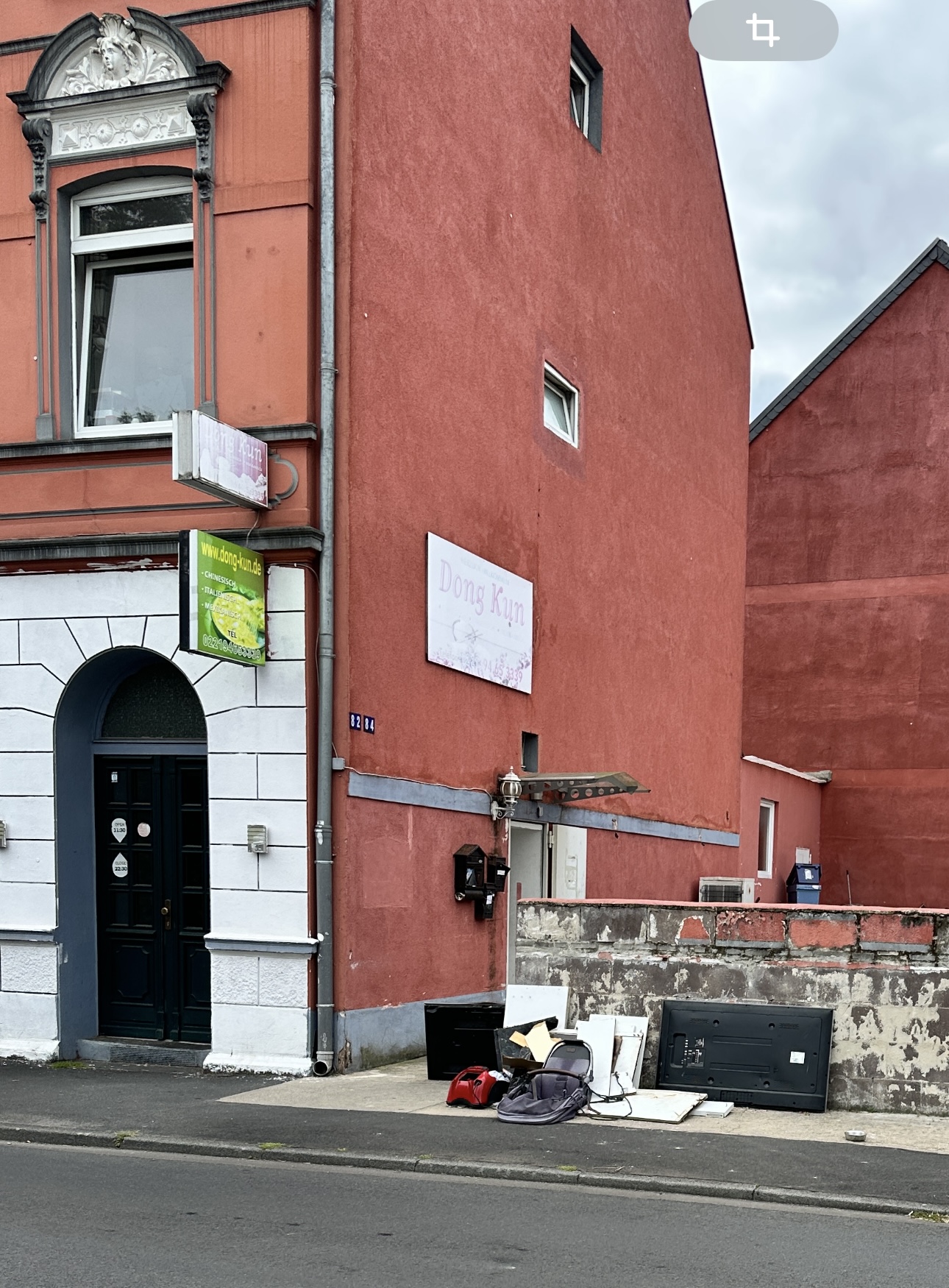 Und schon wieder liegt Sperrmüll und zerbrochenes Glas an der Mauer auf dem Gehweg, eine Gefahr für Mensch und Hund. Und Ratten bewegen sich mittlerweile auch auf dem Gelände.