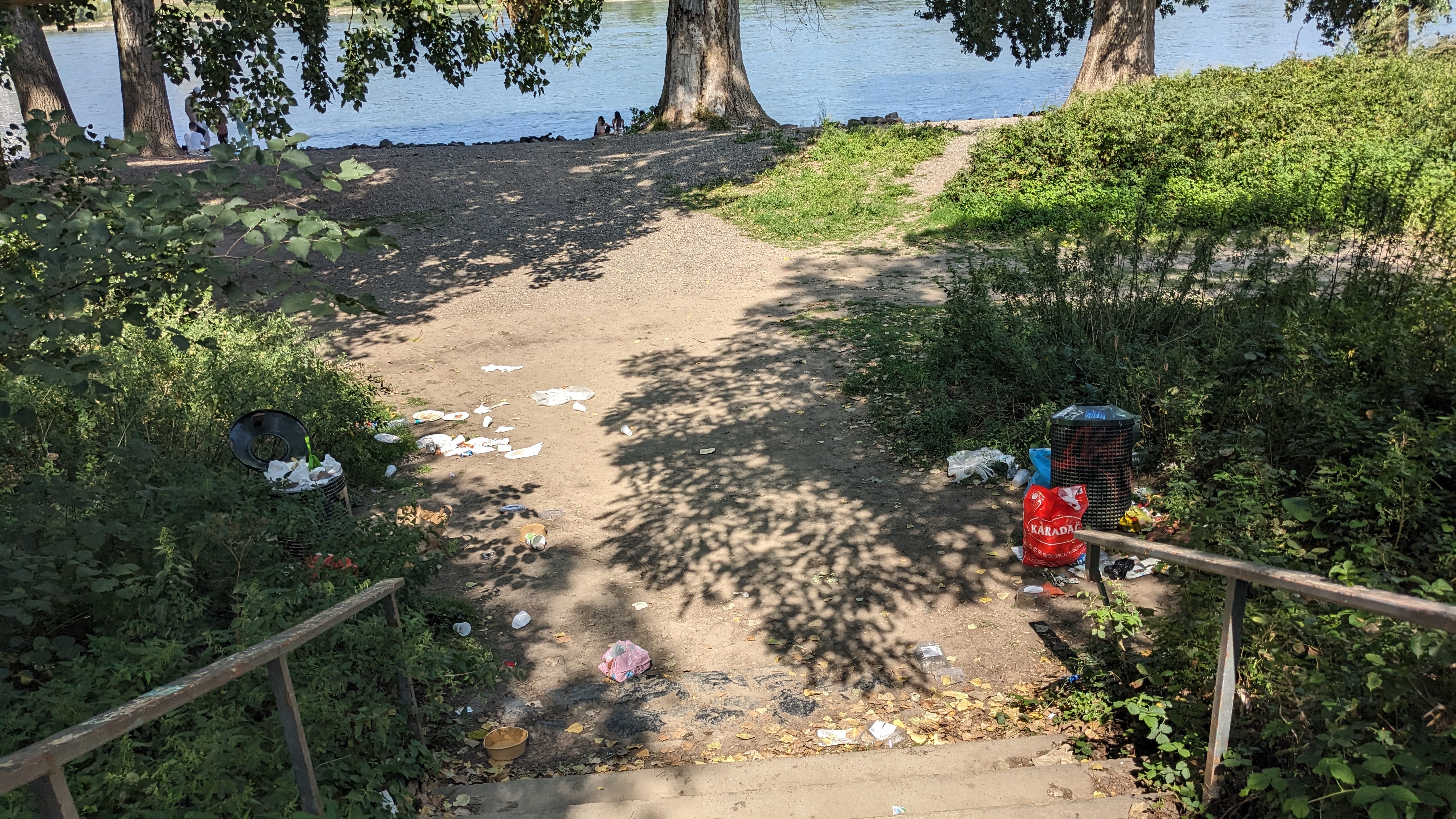 Leider spätestens nach jedem Wochenende das gleiche Bild, am Abgang zum Jugendpark nach der Katzenbuckelbrücke.