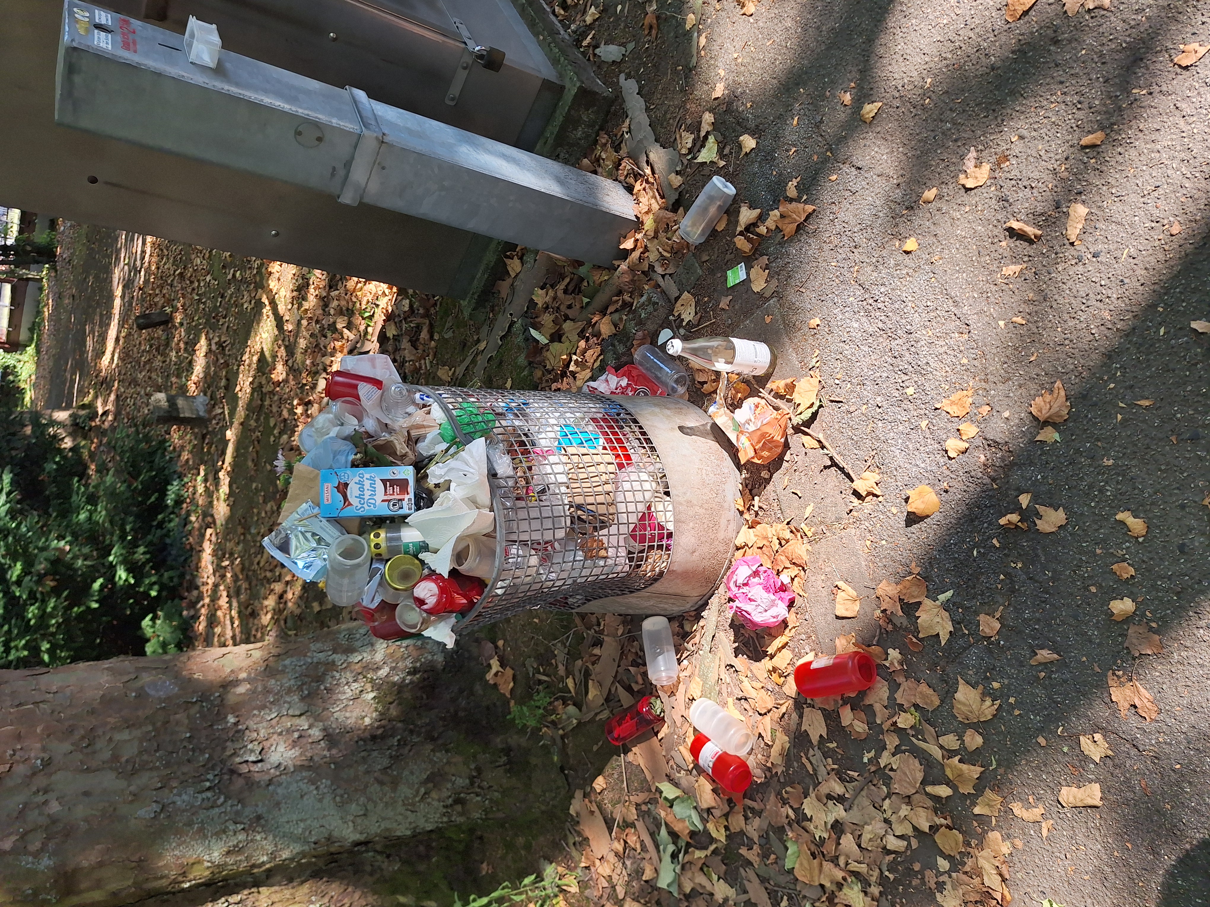 Mülleimer quillt über, am Eingang Melaten-Friedhof, ggü. Aachener 319