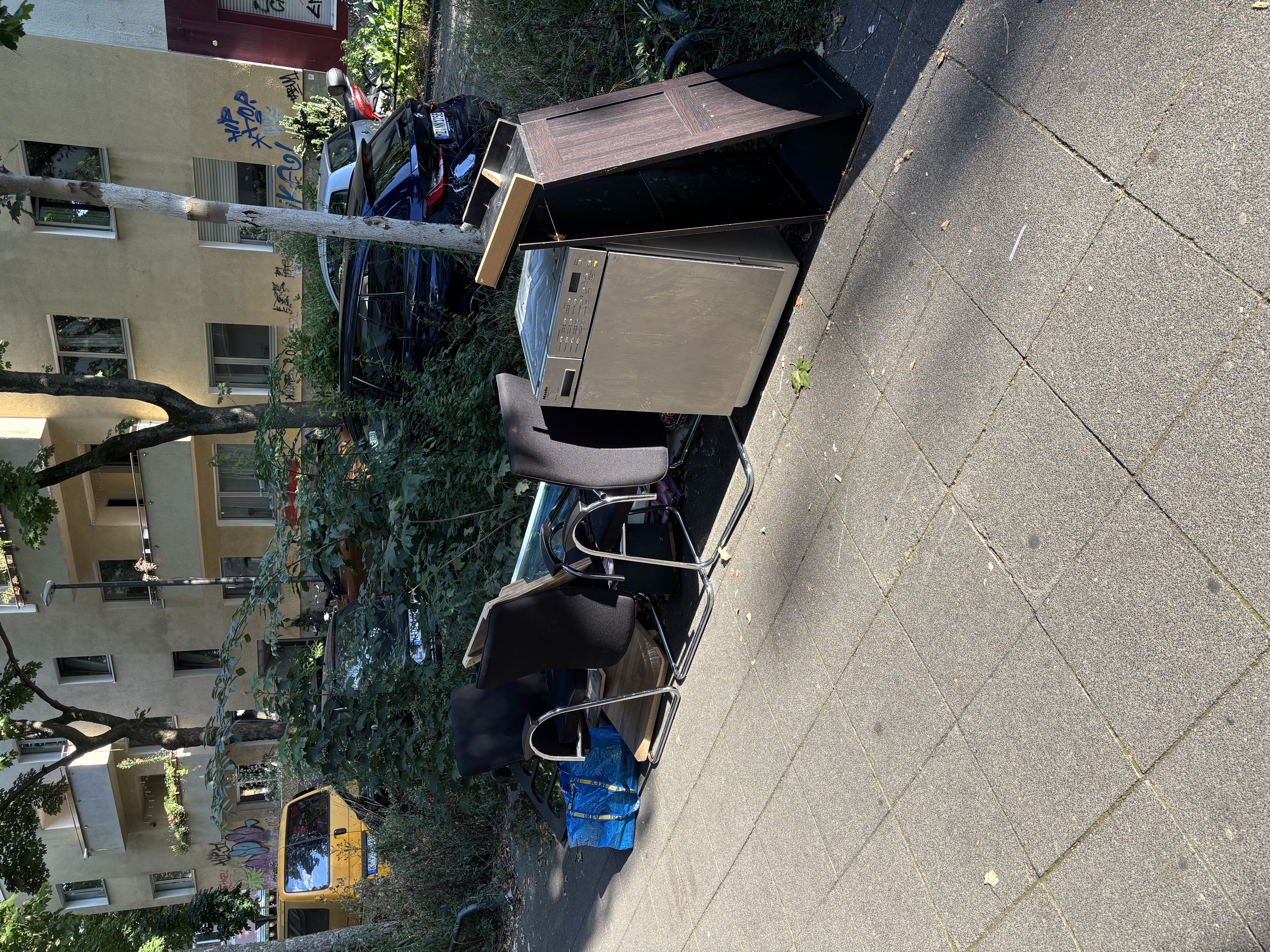 Seit zwei Tagen entsteht leider vor unserer Tür ein Müllhaufen mit Sperr- und Elektromüll. Ich gehe leider davon aus, dass dieser nicht angemeldet bzw. Abgeholt wird.