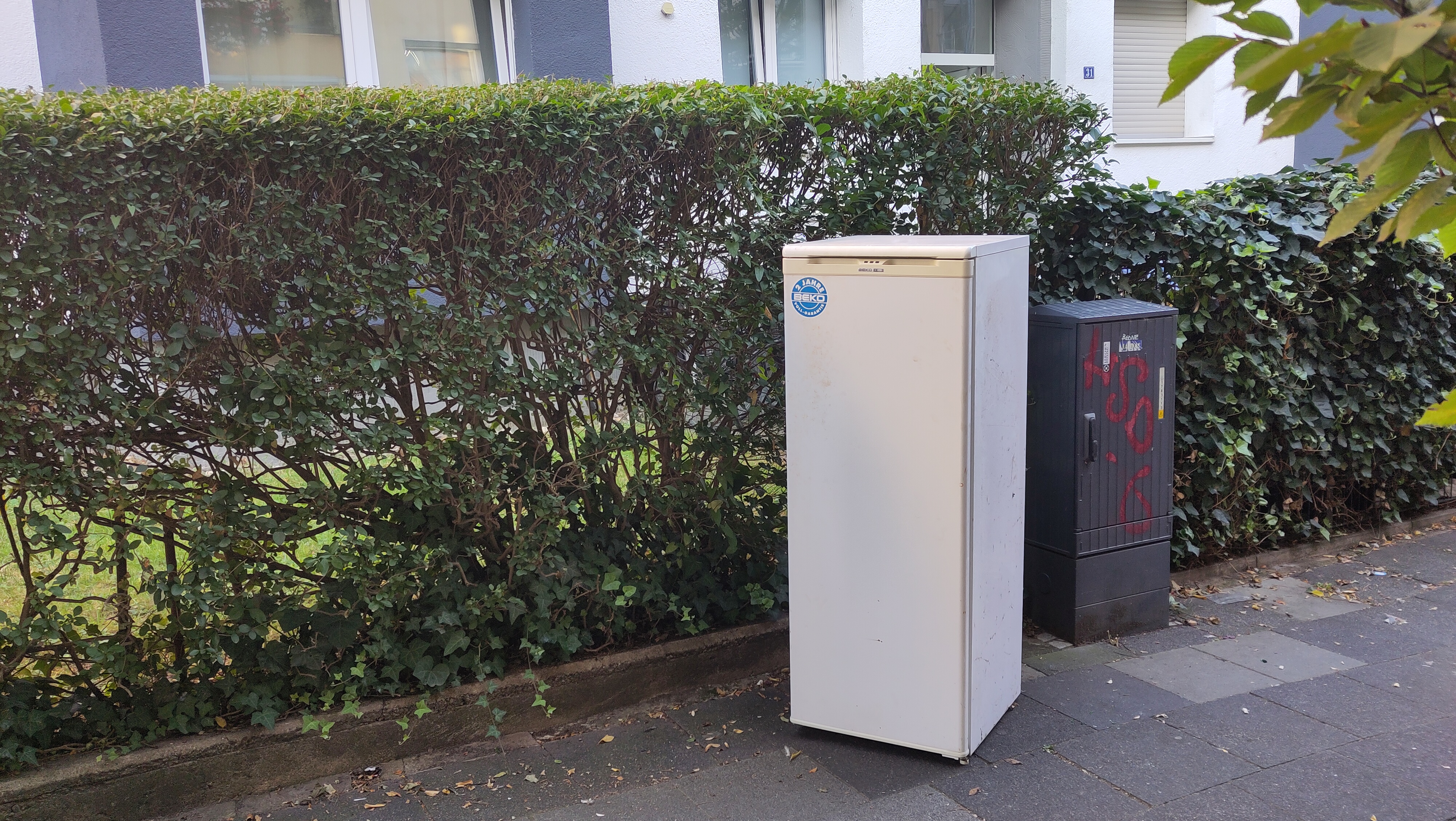 Seit einer Woche steht ein großer Kühlschrank vor der Nießenstraße 31.