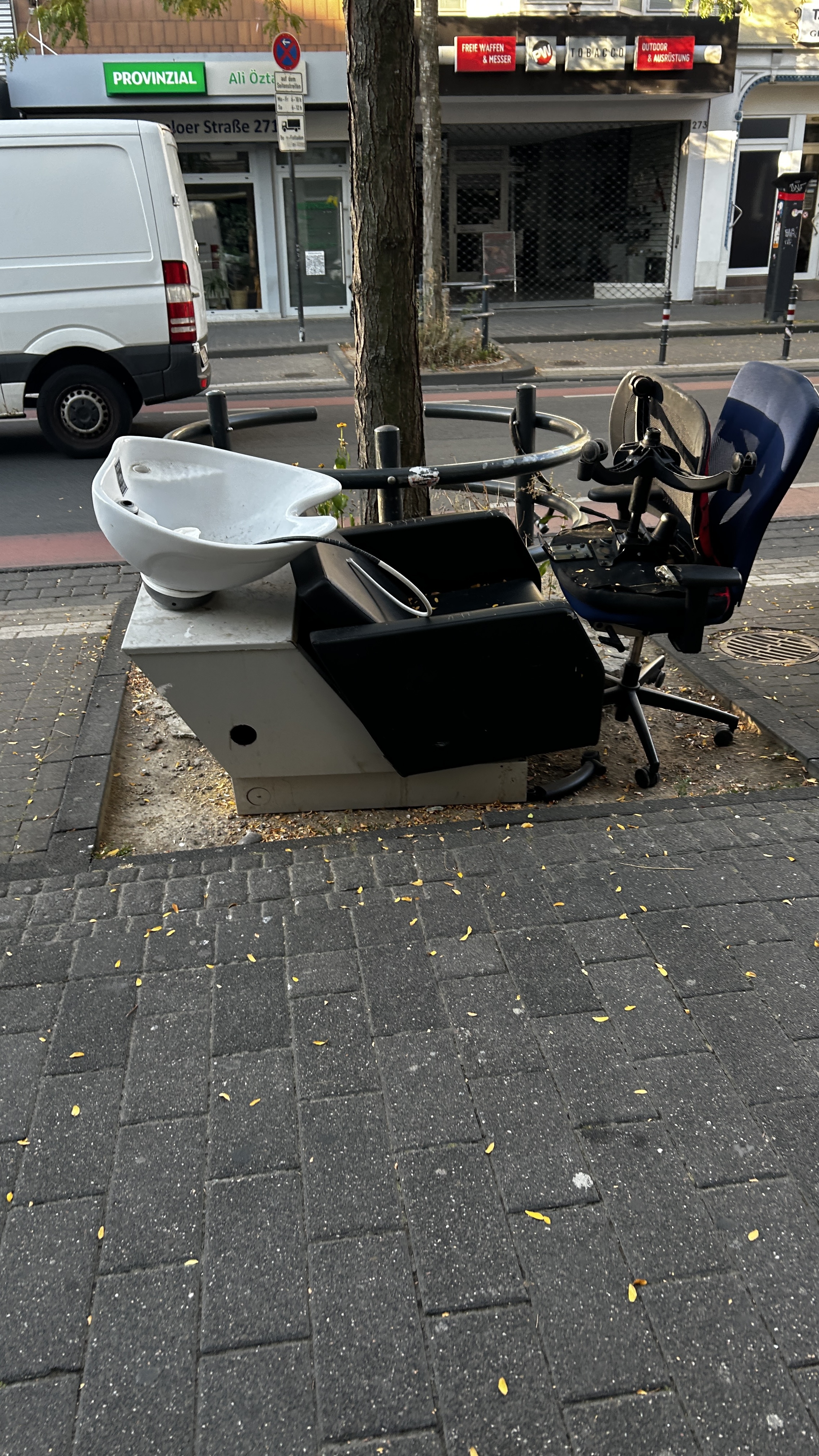 Genau vor dem Friseursalon Mastercut steht seit einer Woche ein alter Waschstuhl. Mittlerweile hat sich da noch mehr Müll angesammelt.