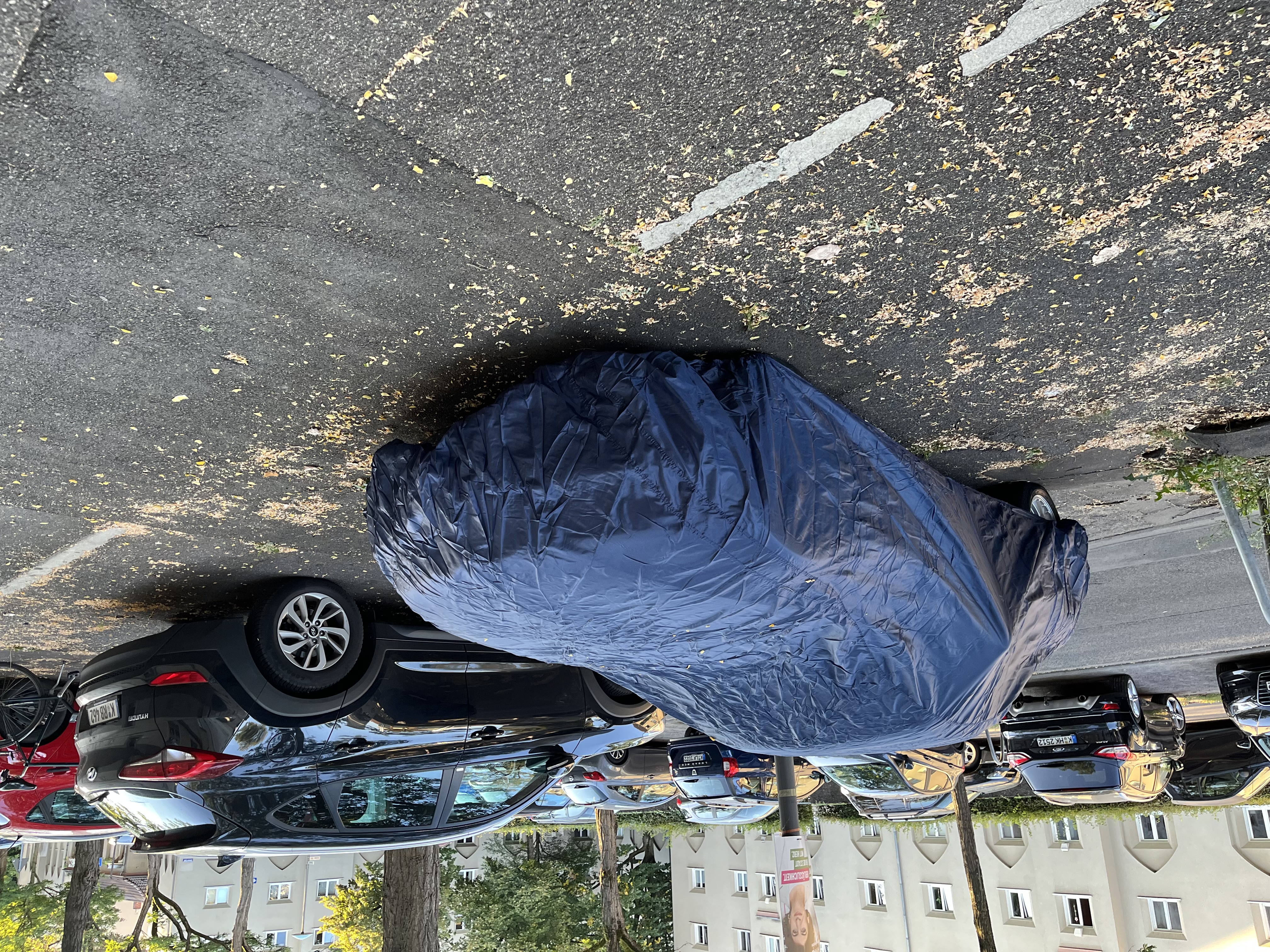 Das Fahrzeug steht schon seit einer Woche dort, man kann nicht erkennen, ob es gesiegelte Kennzeichen hat.