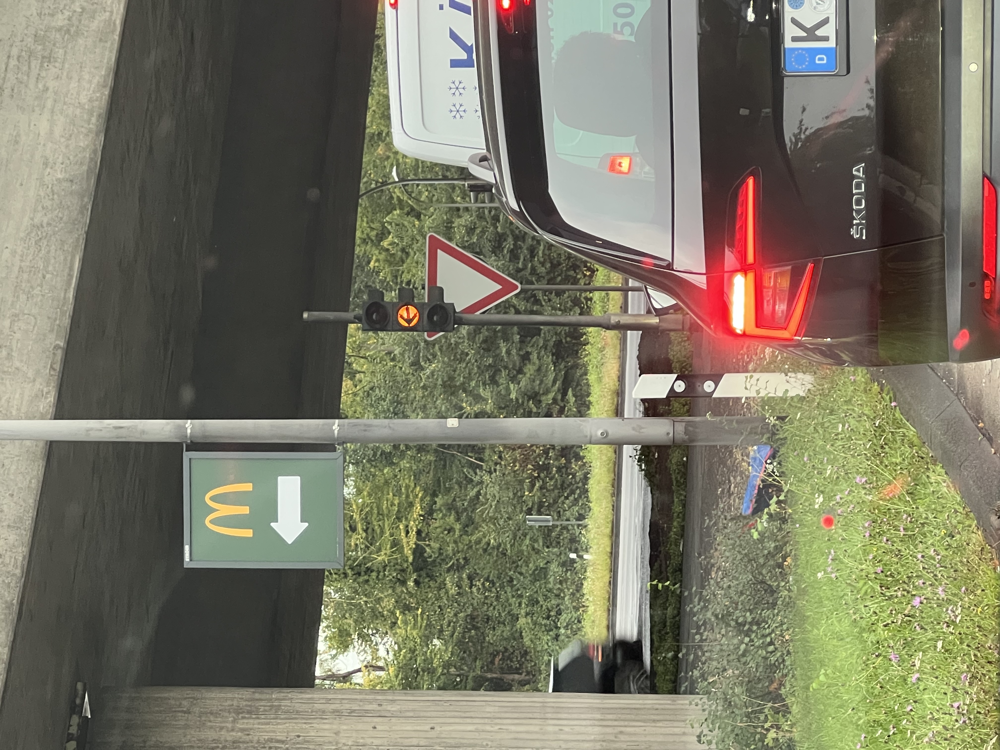 Rotlicht der Ampel auf der Abfahrt des östlichen Zubringers FR Innenstadt, Abfahrt Richtung Gewerbegebiet defekt, siehe Bild