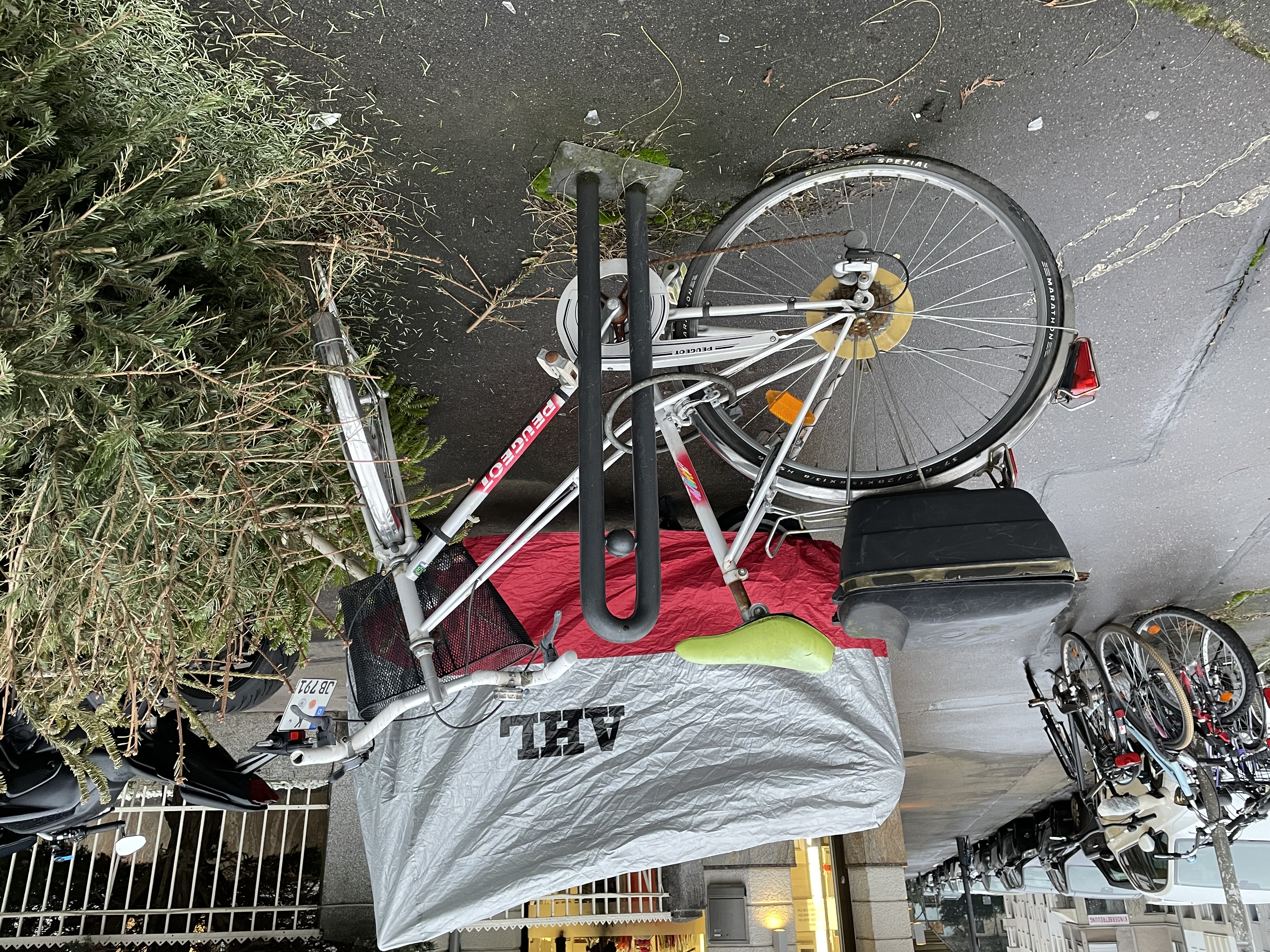 Bei dem Rad sind beide Reifen platt und es wurde seit mindestens zwei Jahren nicht mehr bewegt.