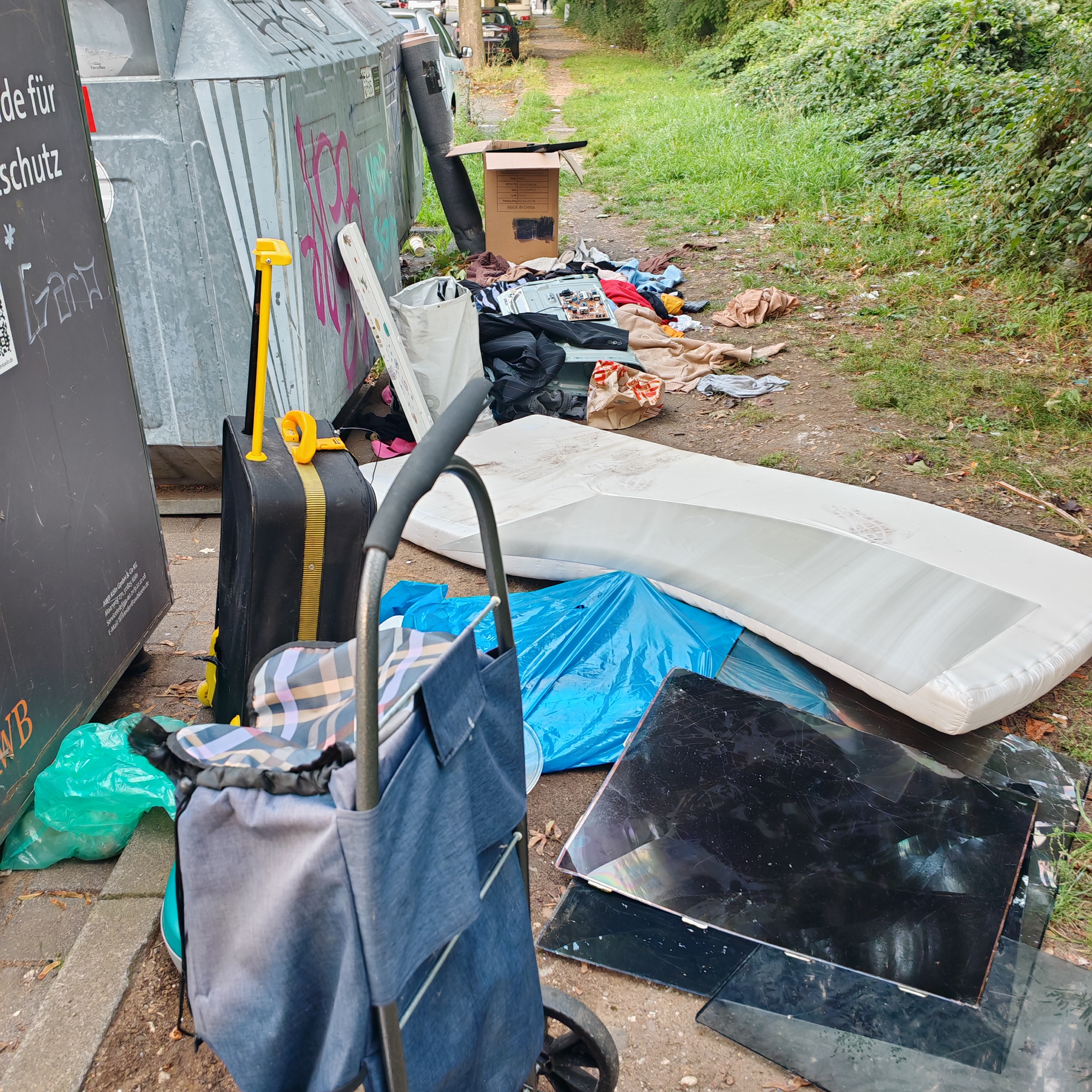 erneut liegt wilder Müll hinter den Glascontainern