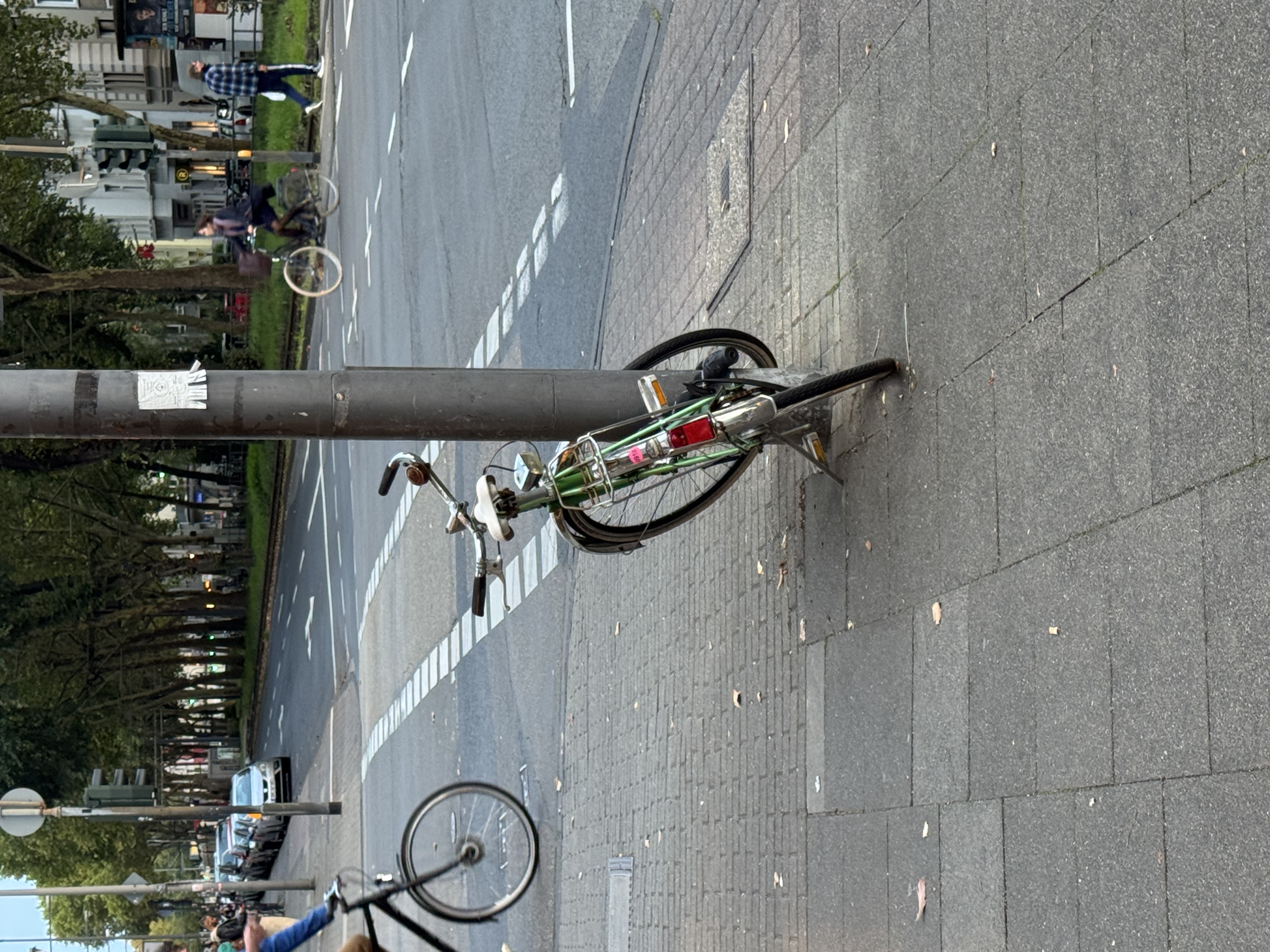 Am Fußgängerüberweg zwischen der H Berrenrather Straße/ Gürtel und der Hausnummer 32 steht auf dem Bürgersteig am Laternenmast seit über einem Jahr ein Fahrrad angekettet. Es behindert den Überweg für Passanten, vor allem für die zahlreichen Schüler, die zwischen Bahn und Bus wechseln. Hier hat sich schon öfter jemand mit der Jacke oder einem Taschentrageriemen verfangen.