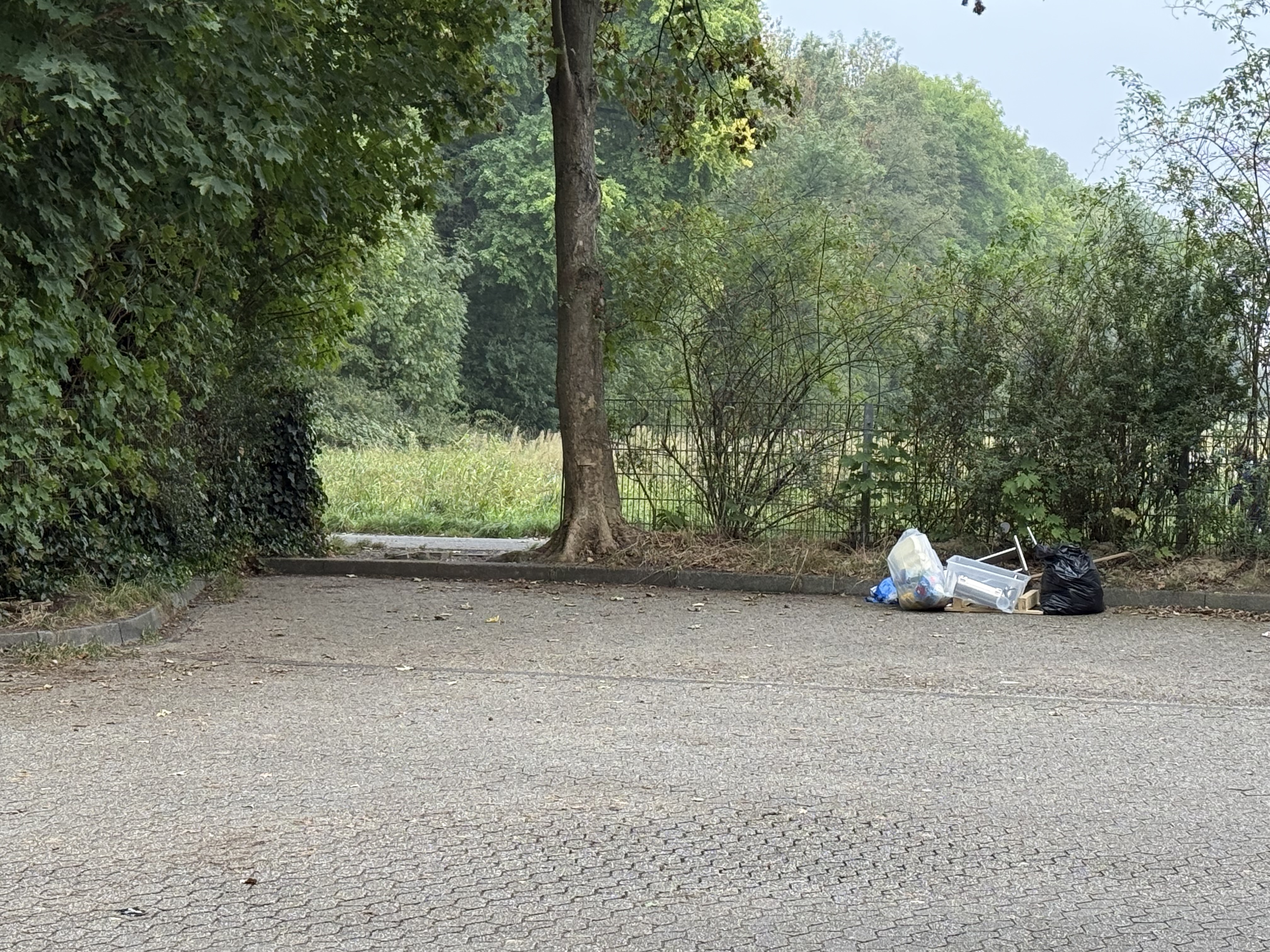 Wilder Müll am Ende des Parkplatzes am Friedhof Eil .