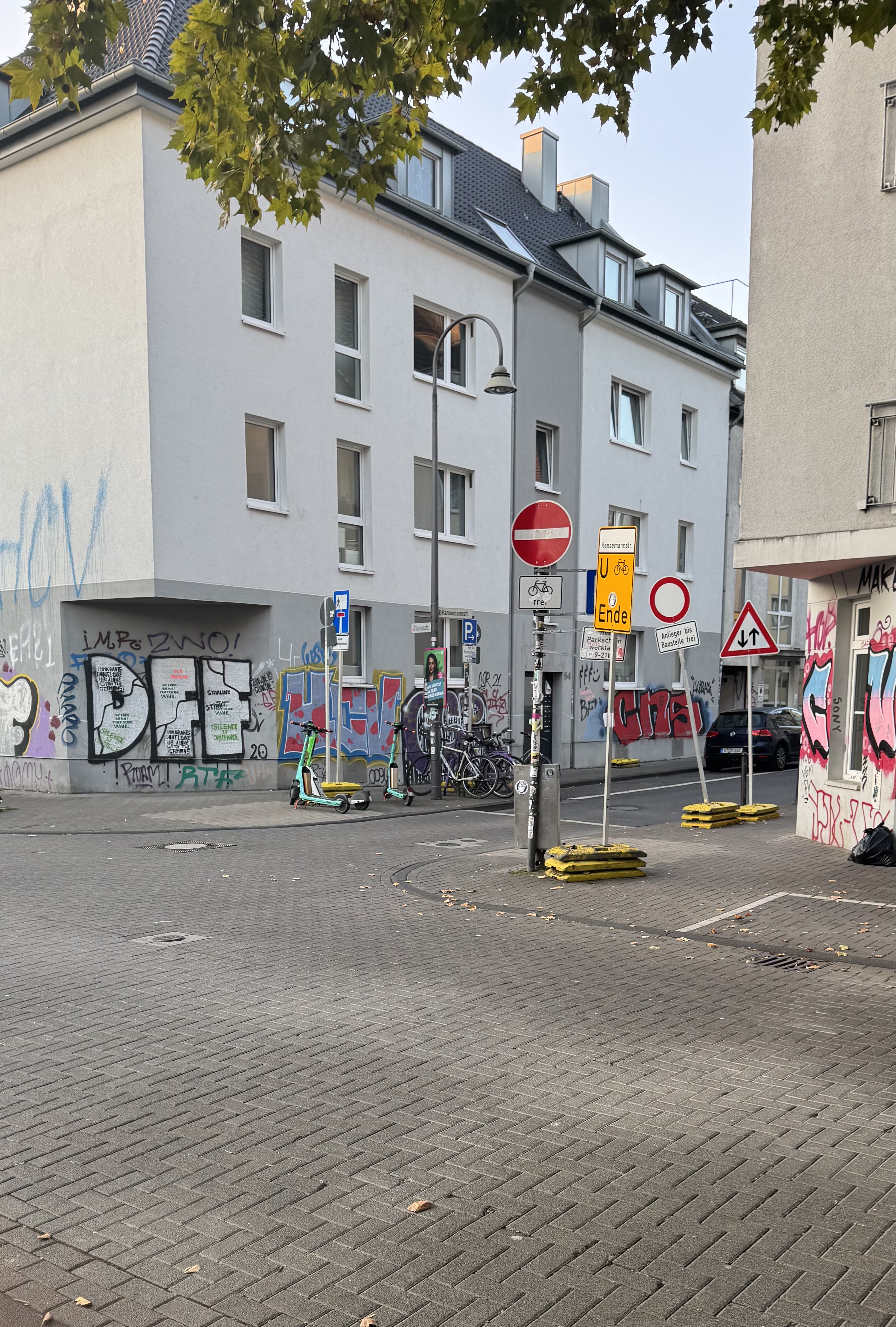 Widersprüchliche Beschilderung. Die Zeichen „Einfahrt verbotenen“ und „Radverkehr frei“ müssen ausgekreuzt werden. Dazu bedarf es Zeichen „Vorgeschriebene Fahrtrichtung geradeaus“ und „Anlieger frei“ auf der Stammstraße vor der Einmündung Hansemannstraße (Richtung Glasstraße), da die temporäre Beschilderung „Verbot für Fahrzeuge aller Art“ und „Anlieger bis Baustelle frei“ auf der Hansemannstraße von der Stammstraße aus wegen der dortigen Kurvenführung nicht rechtzeitig erkennbar ist.