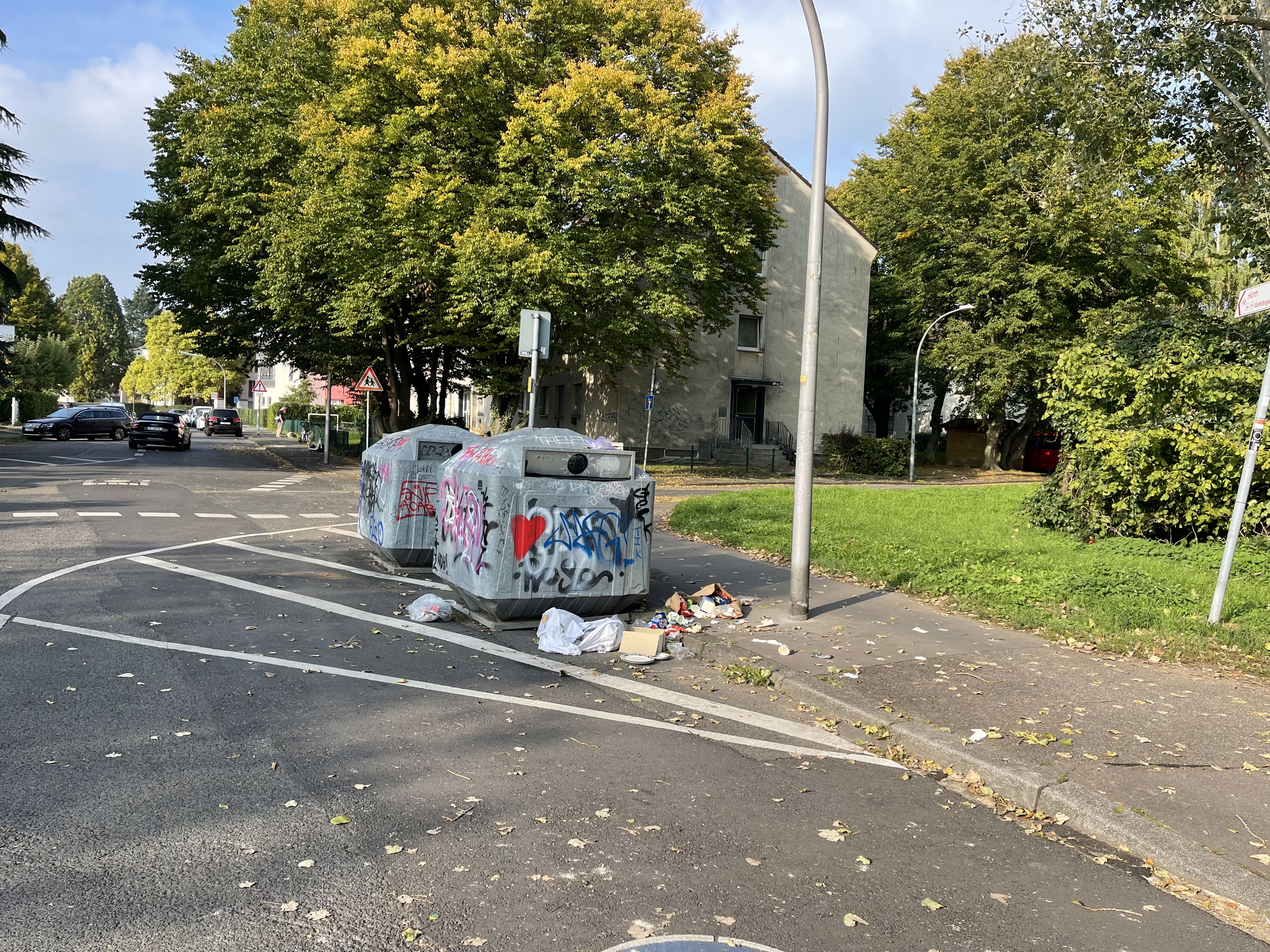 Außerdem liegt auch neben den Mülltonnen der „Übergangshäuser“ Müll