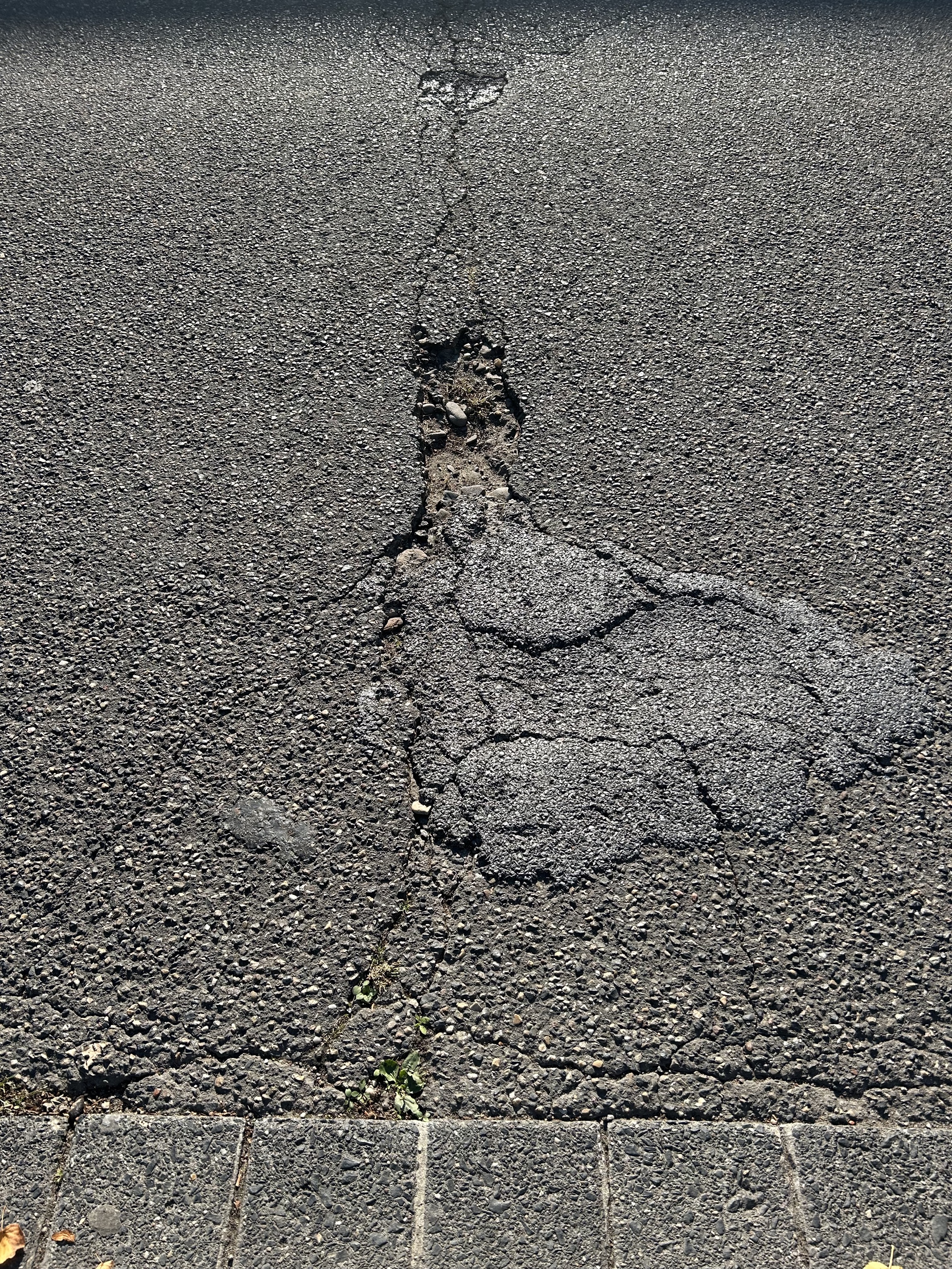 Neues Schlagloch am Spitzangerweg in Lövenich. Bitte in Ordnung bringen, bevor es noch größer wird. Danke.
